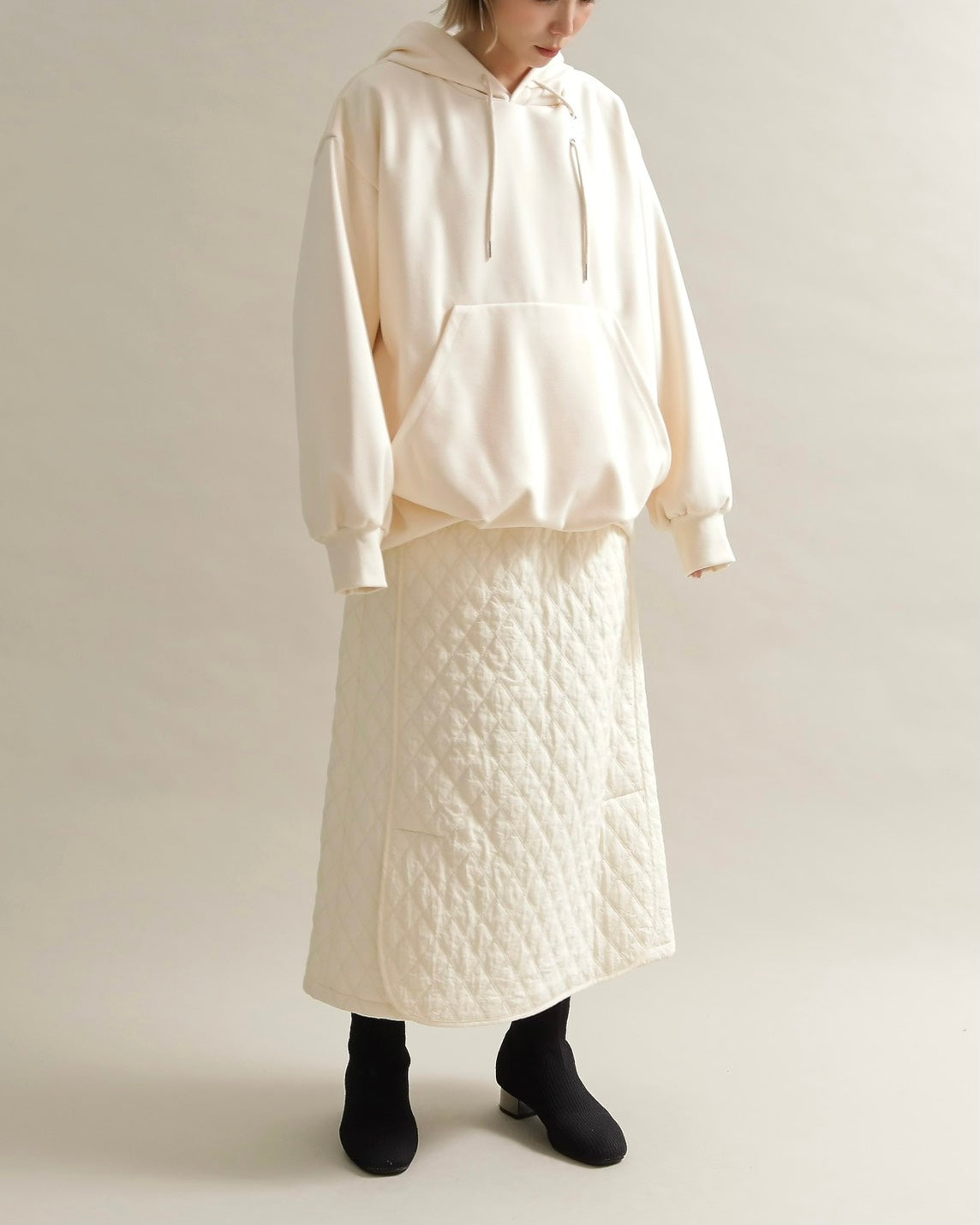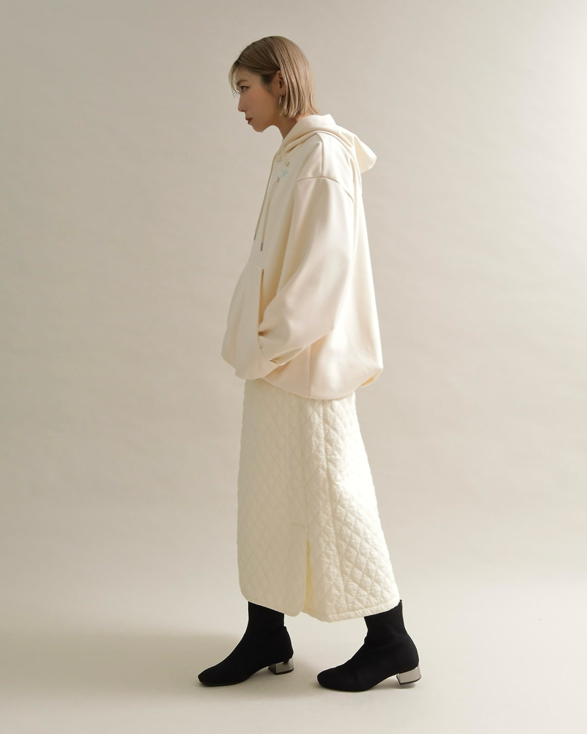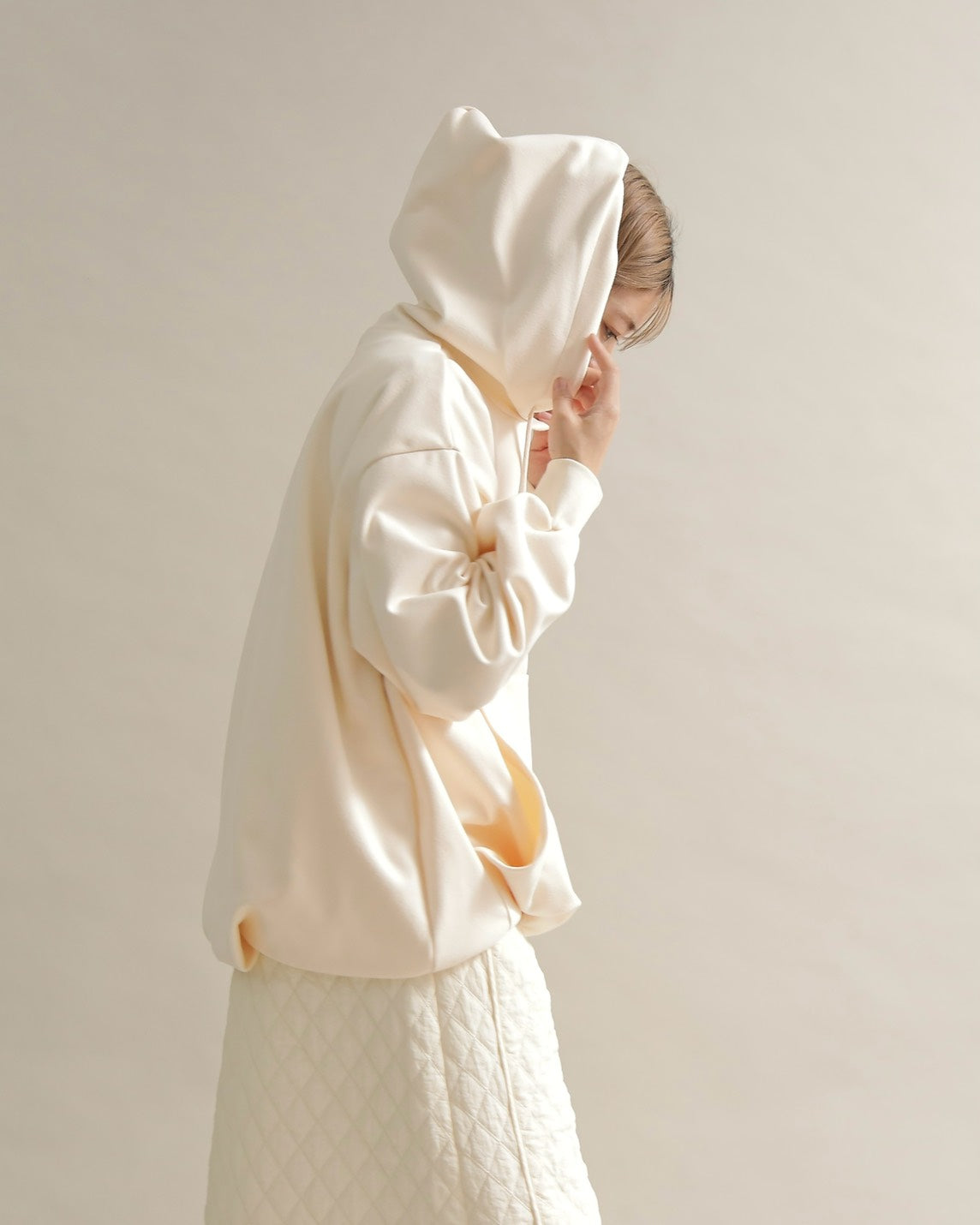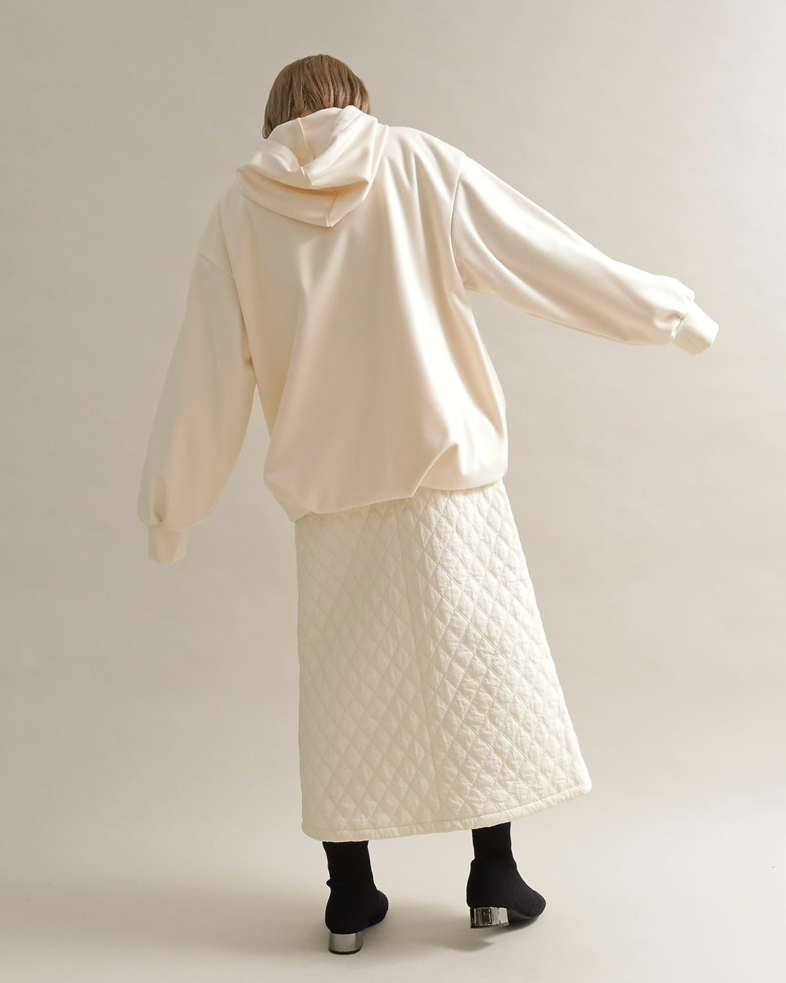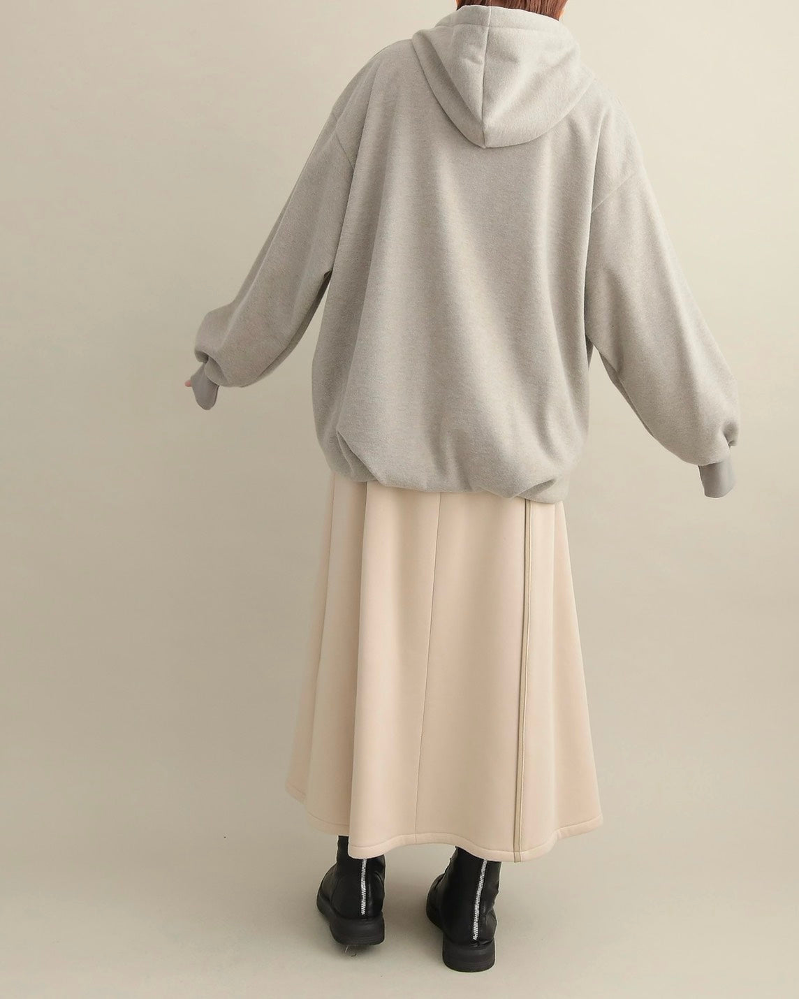 裾は自然にふくらむ丸みのあるフォルムで、着るだけでこなれた雰囲気を演出します。