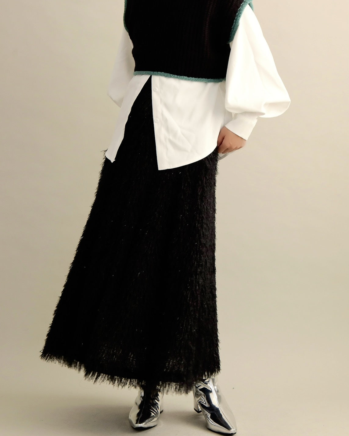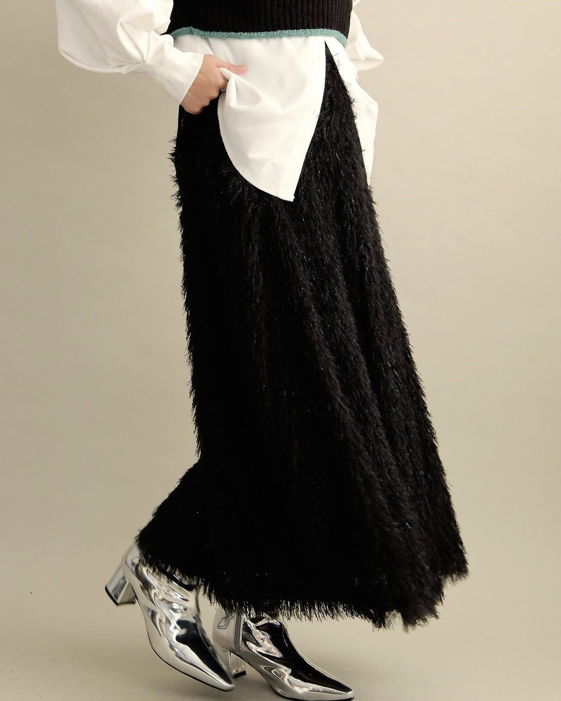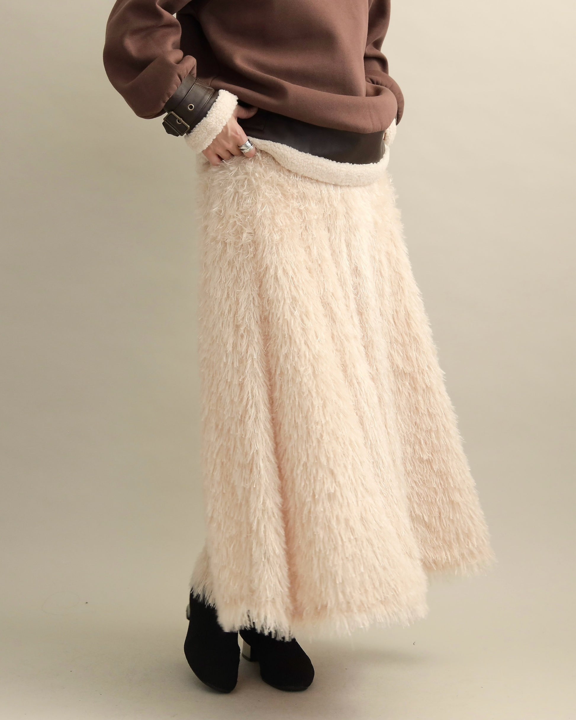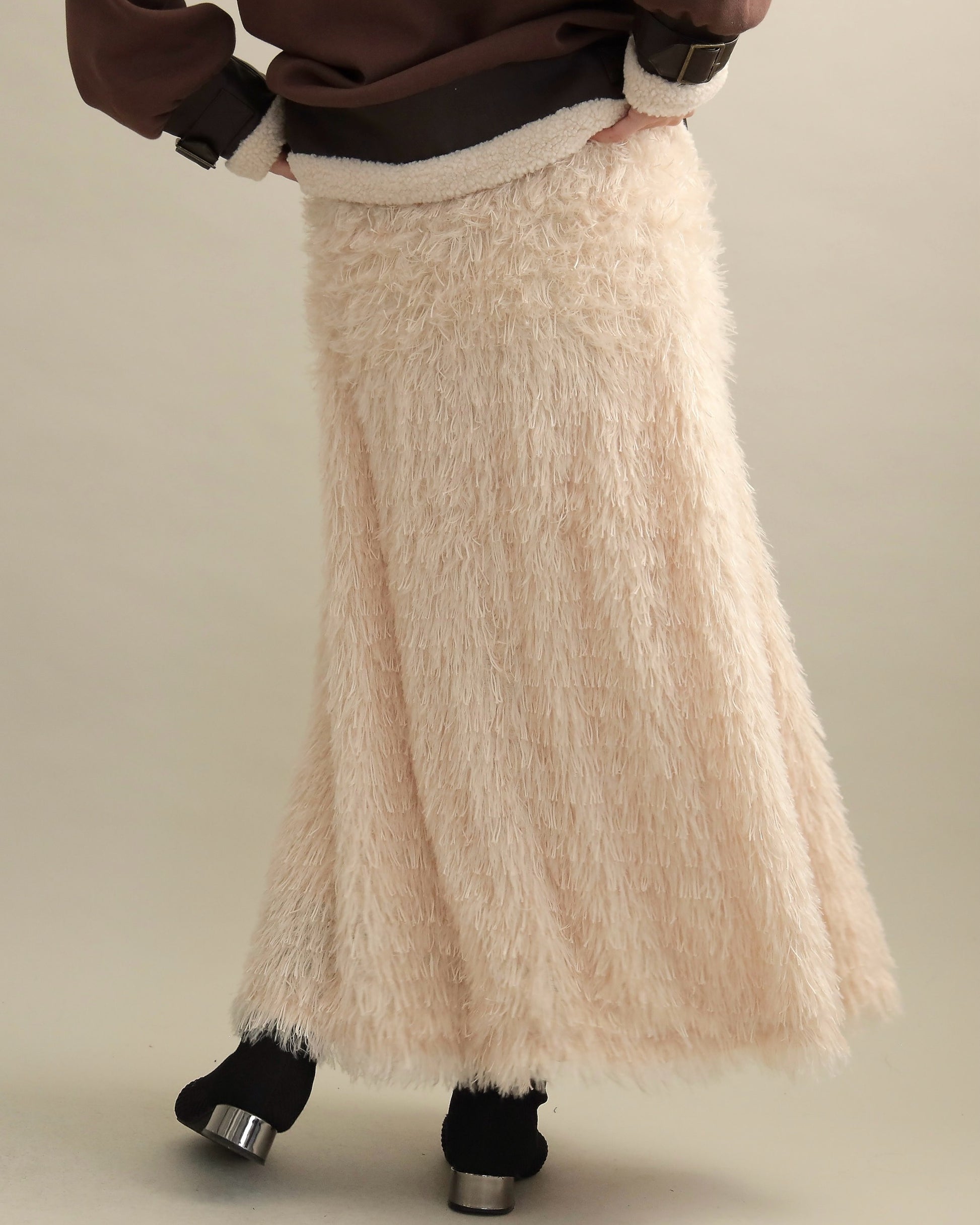 ふわっとした表情が魅力の、シャギーファーロングスカート。