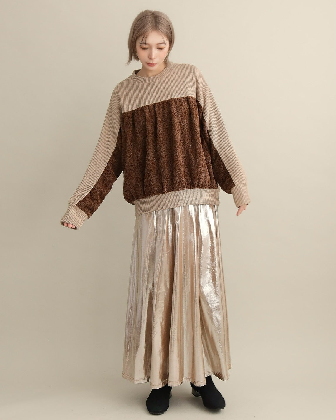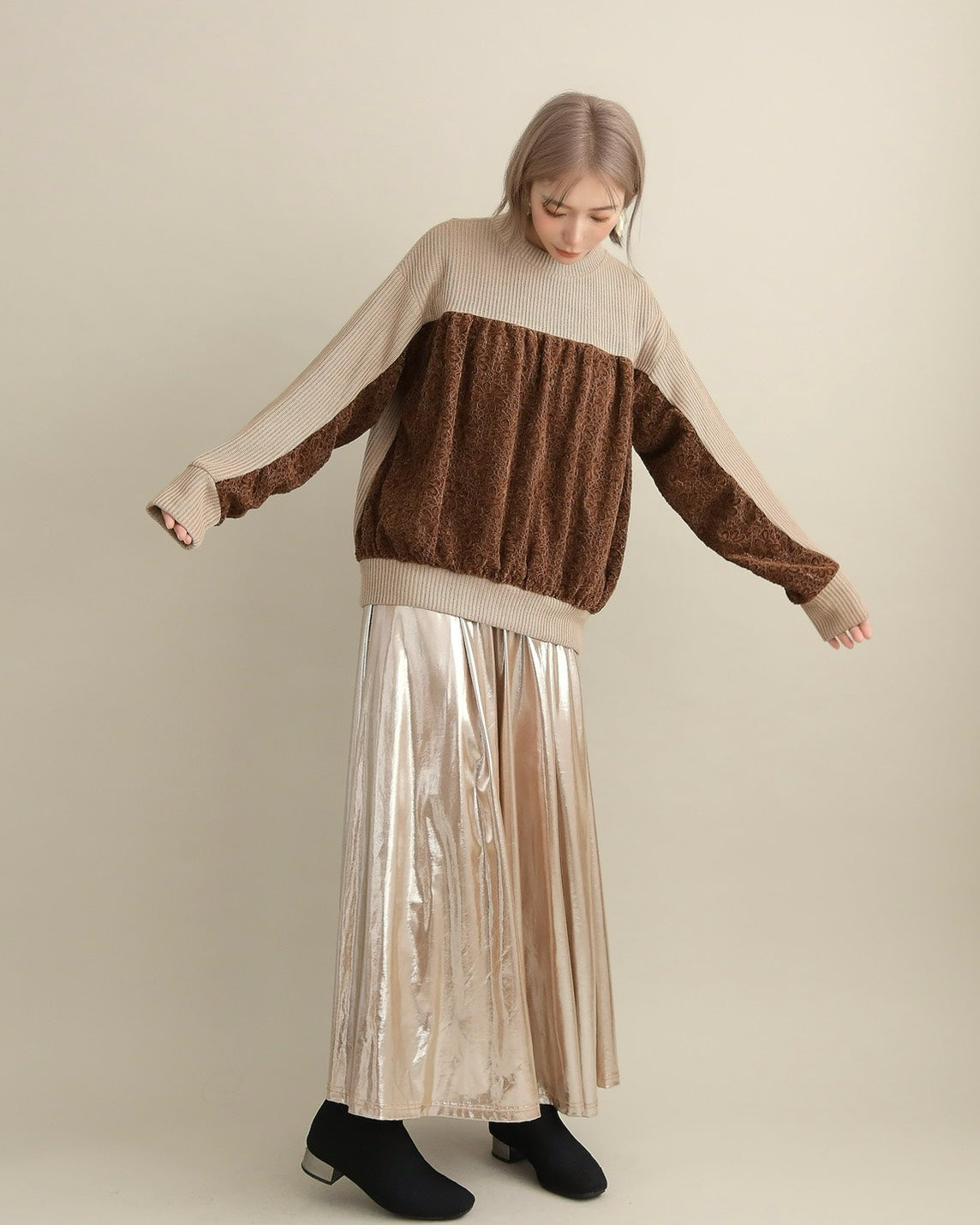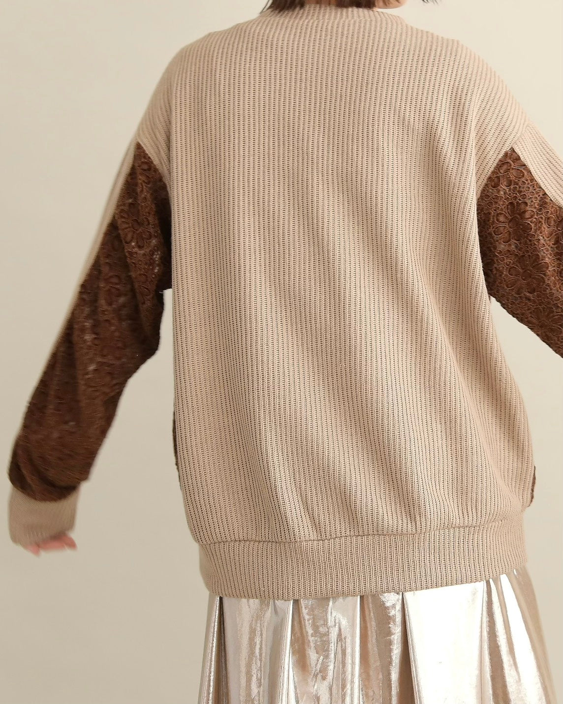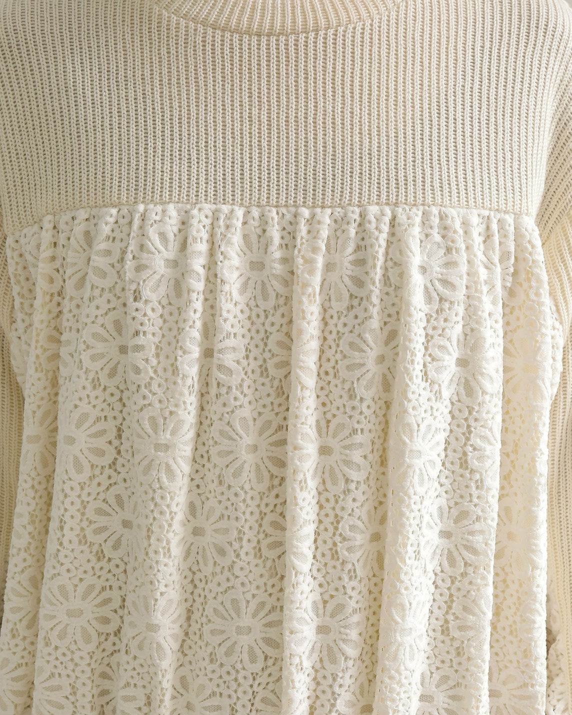 ふんわり広がるレースの表情が女性らしさを引き立てる、異素材ミックスのニットプルオーバー。胸下から切り替えたレースギャザーが立体的に広がり、1枚で着映えする大人のフェミニンスタイルを叶えます。