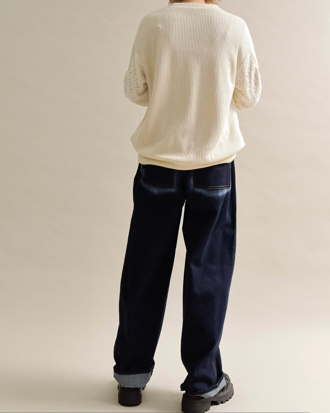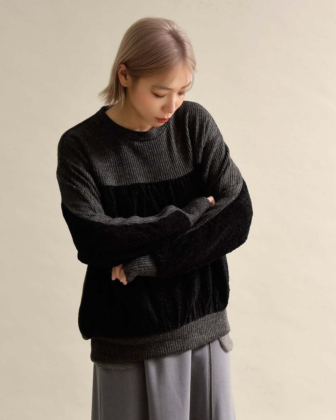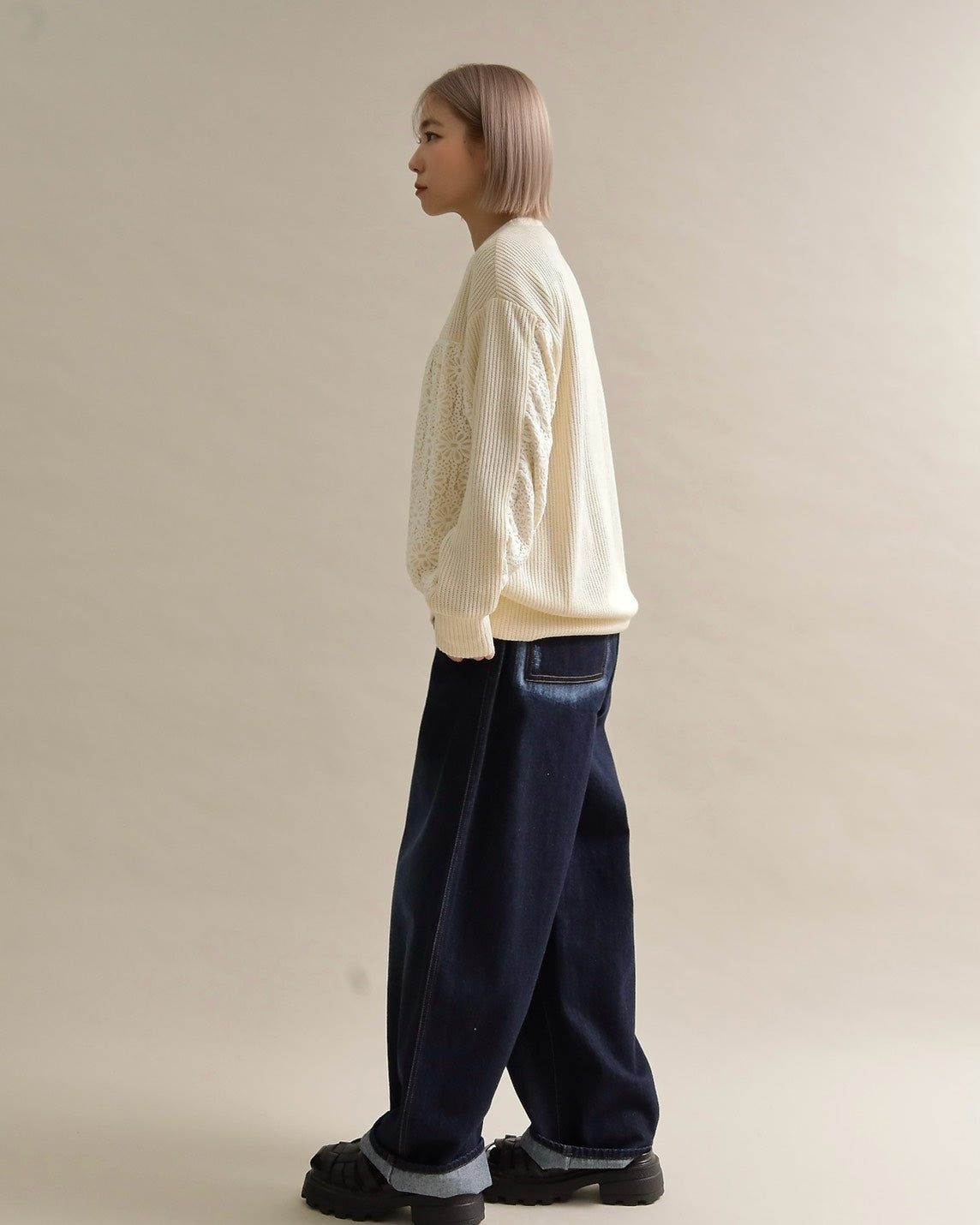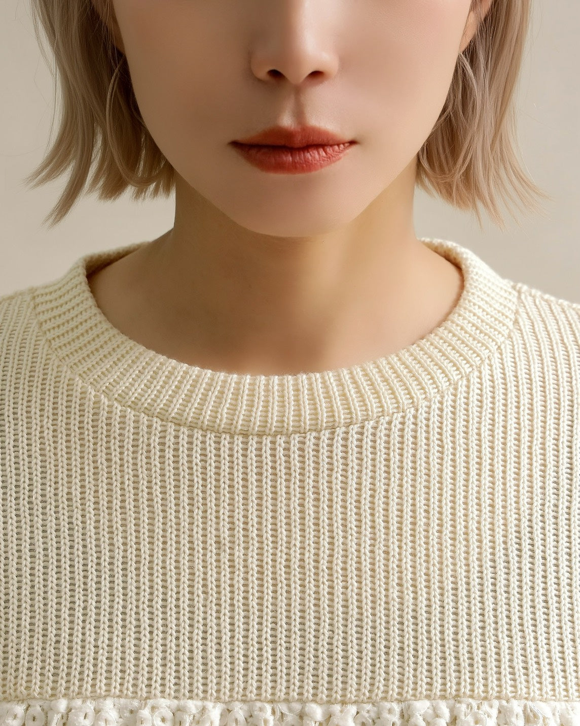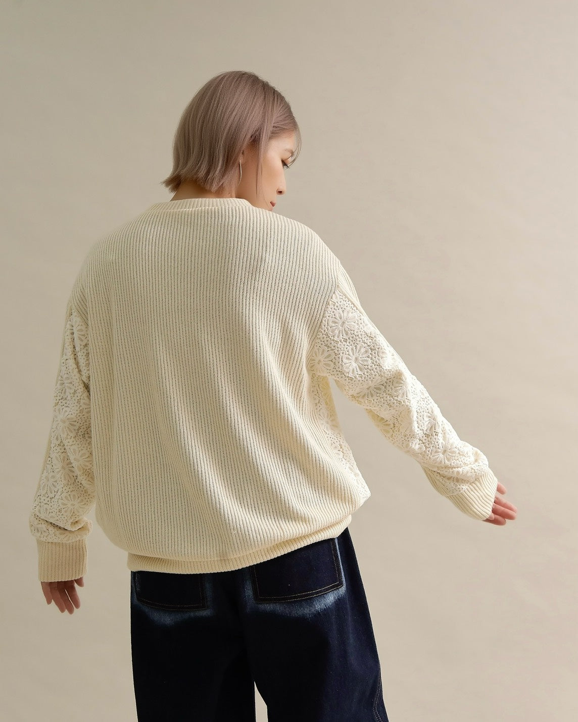 ふんわり広がるレースの表情が女性らしさを引き立てる、異素材ミックスのニットプルオーバー。胸下から切り替えたレースギャザーが立体的に広がり、1枚で着映えする大人のフェミニンスタイルを叶えます。
