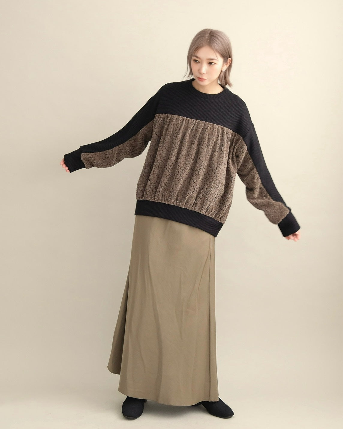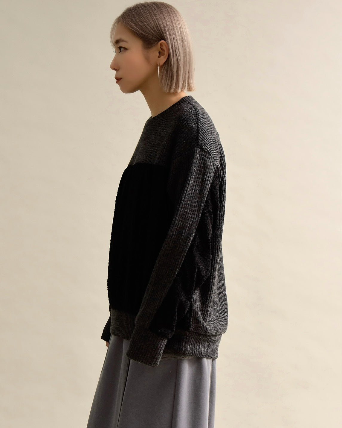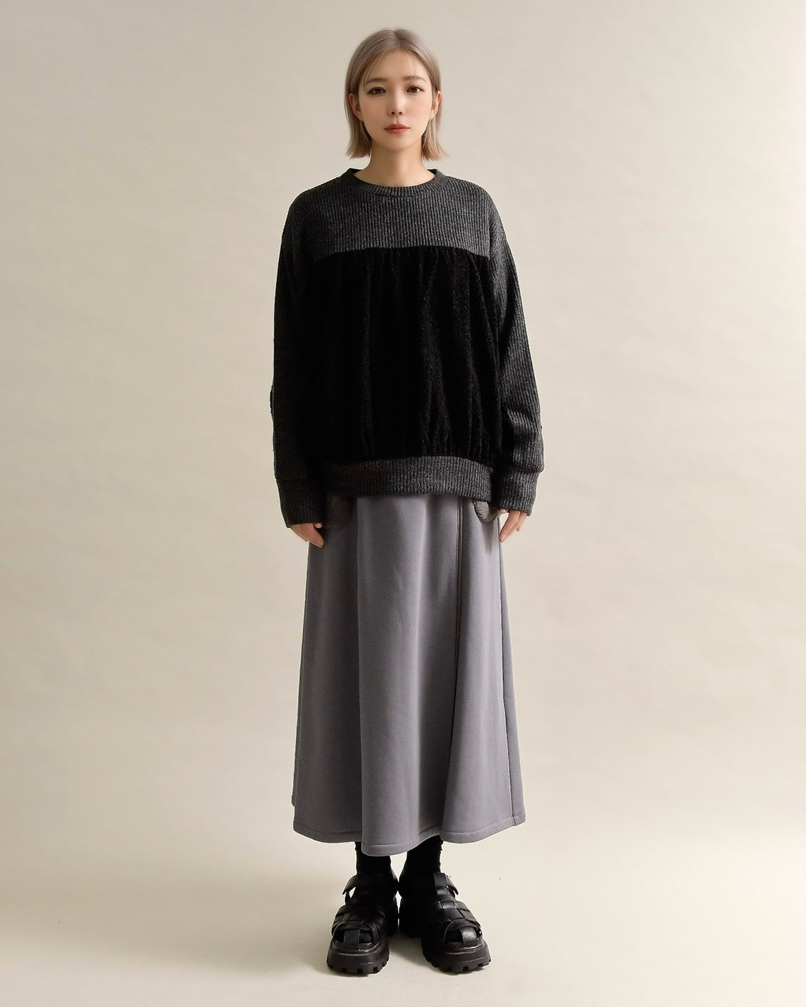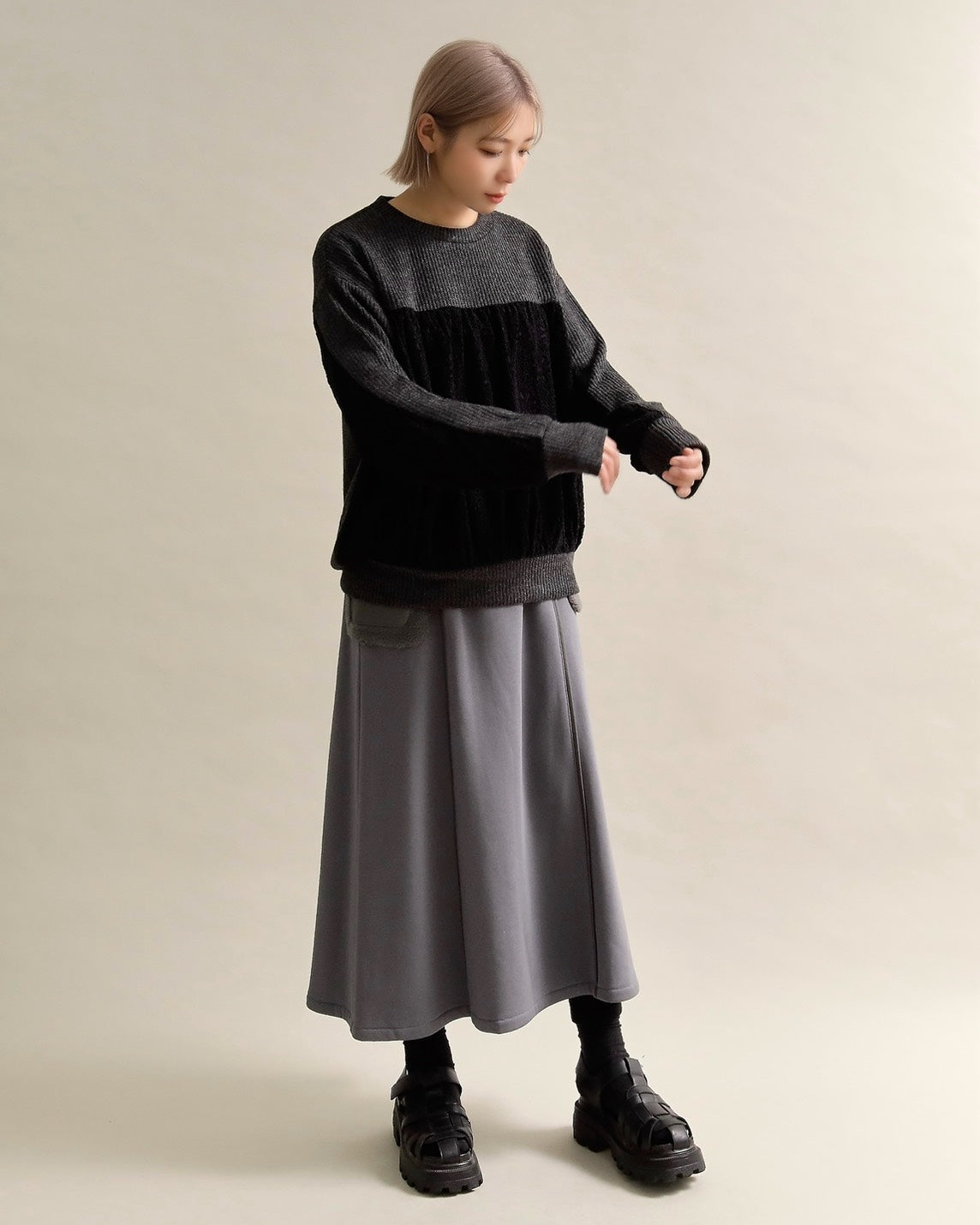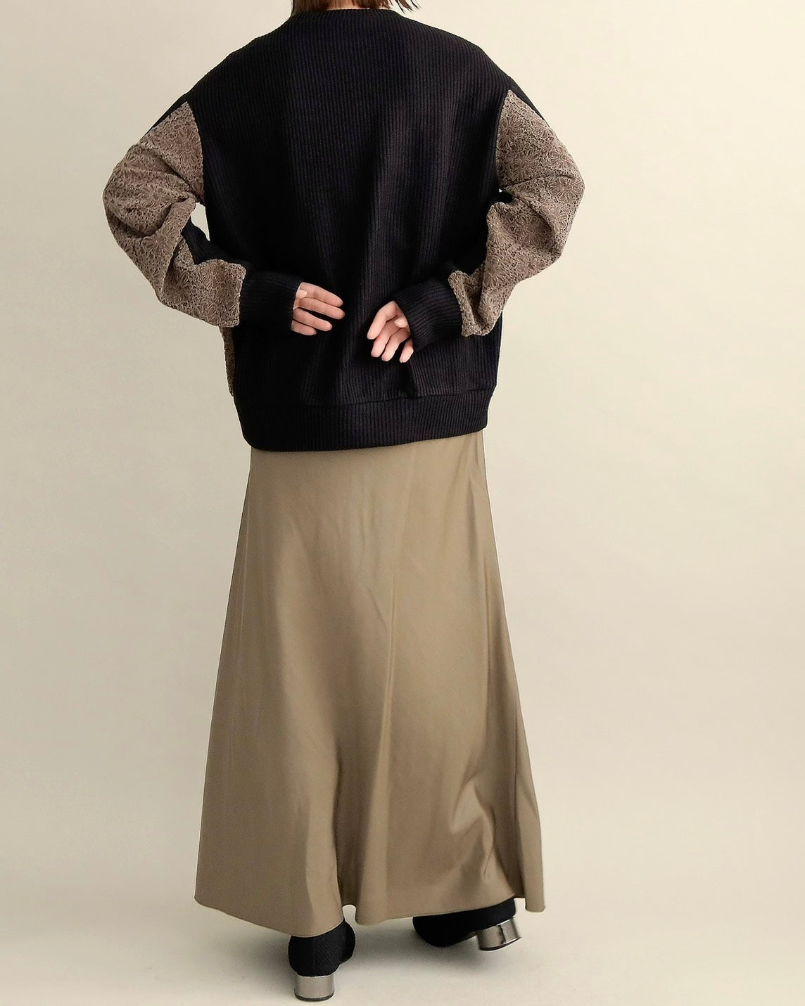 上身頃と袖には柔らかなリブニットを使用し、伸縮性のあるストレスフリーな着心地に。