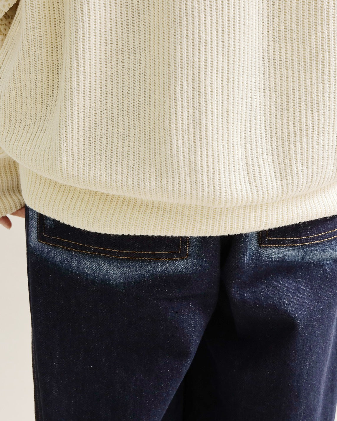 裾はやや丸みをもたせたシルエットで、アウトしてもバランス良く決まり、パンツにもスカートにも好相性。カジュアルからきれいめまで幅広いコーデに取り入れられる、着回し力抜群の一枚です。