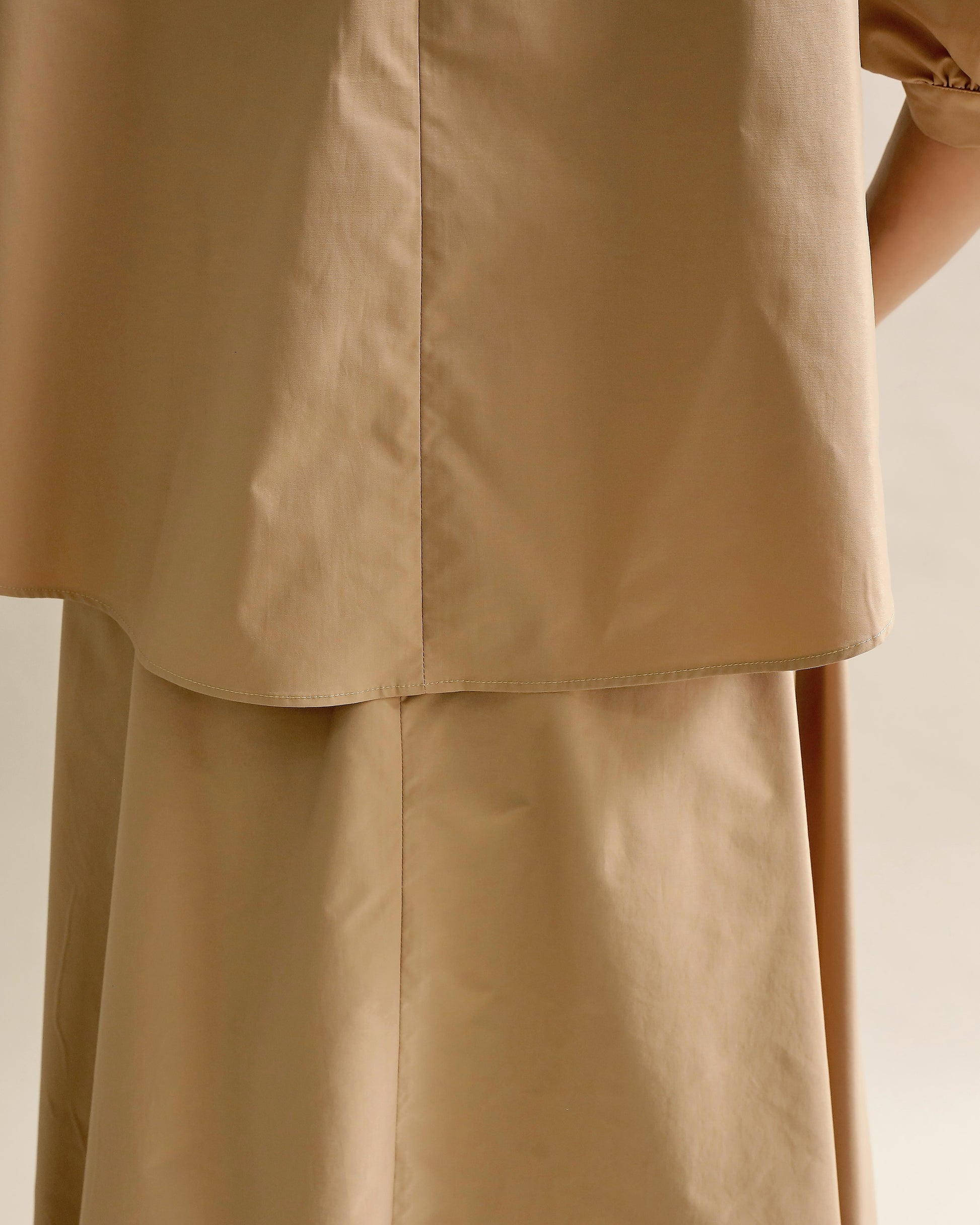 前後差のある着丈がヒップまわりをカバーし、ボトムを選ばないのも魅力。