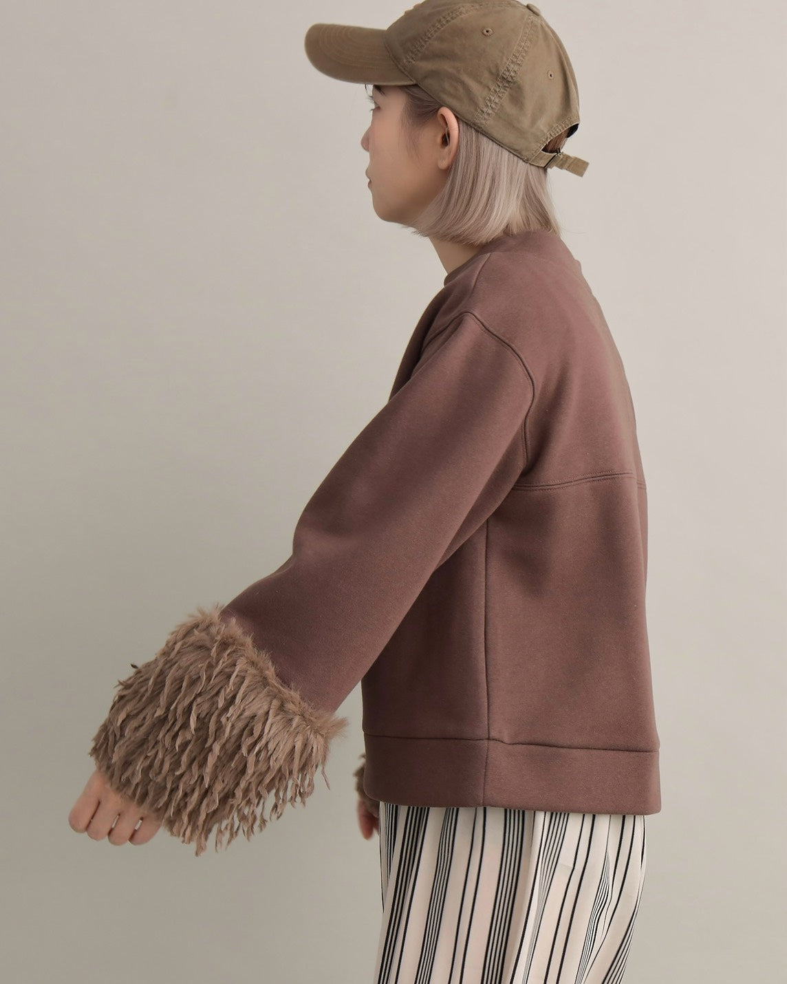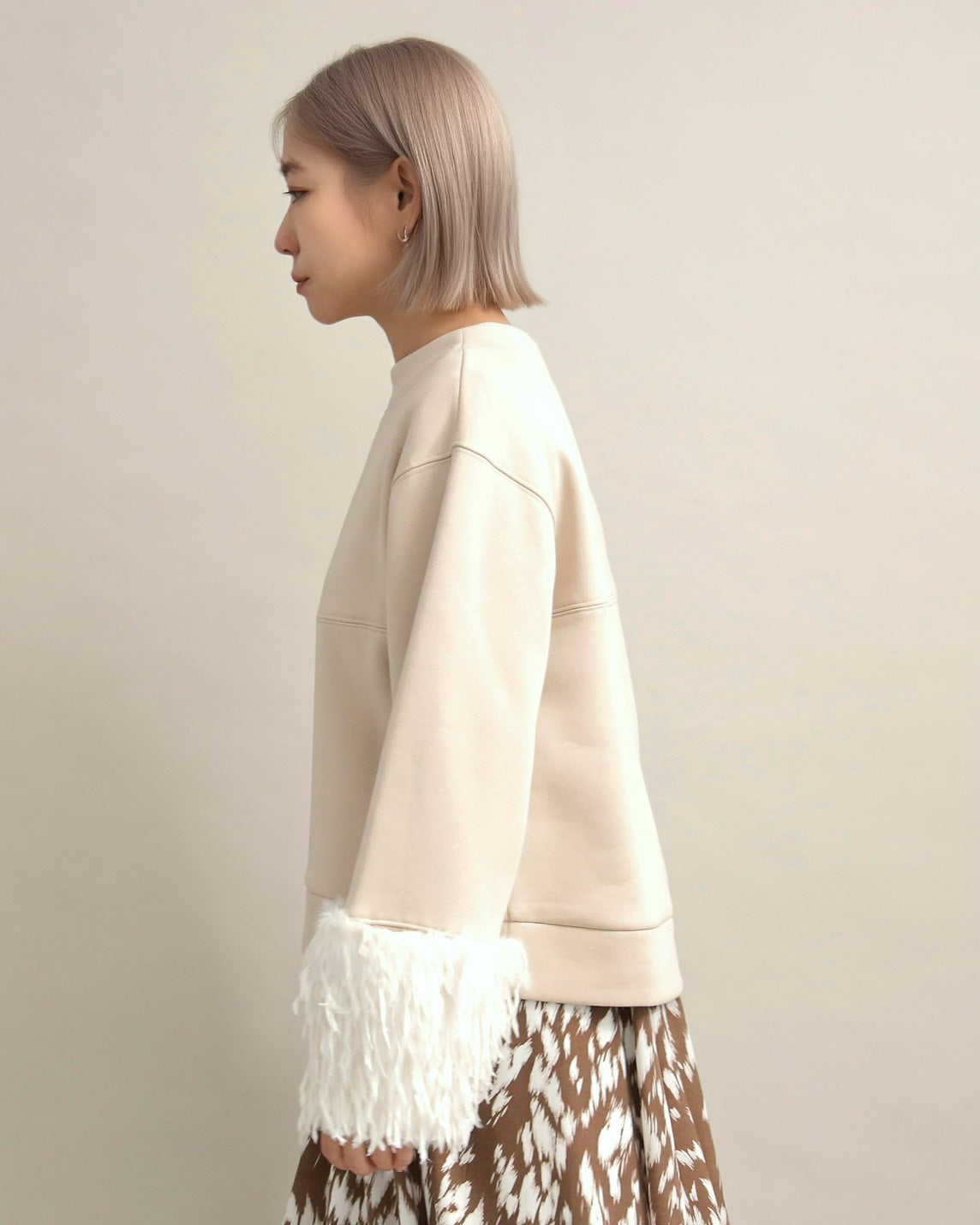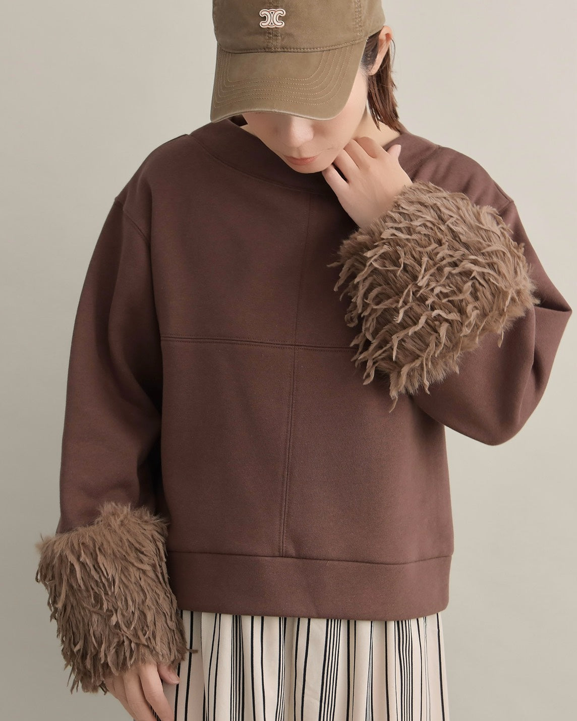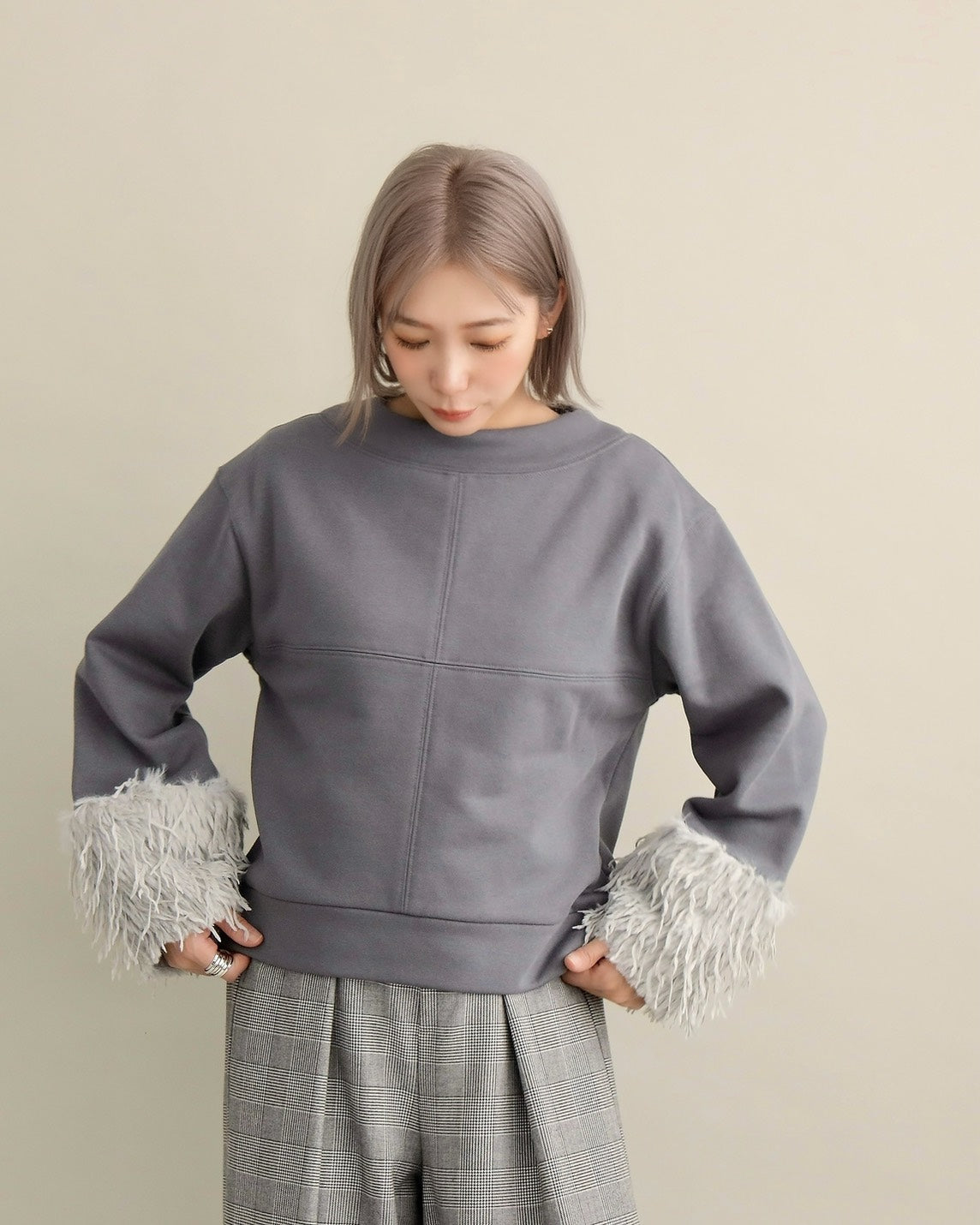 袖口にあしらったフリンジファーが、存在感を放つデザインスウェット。