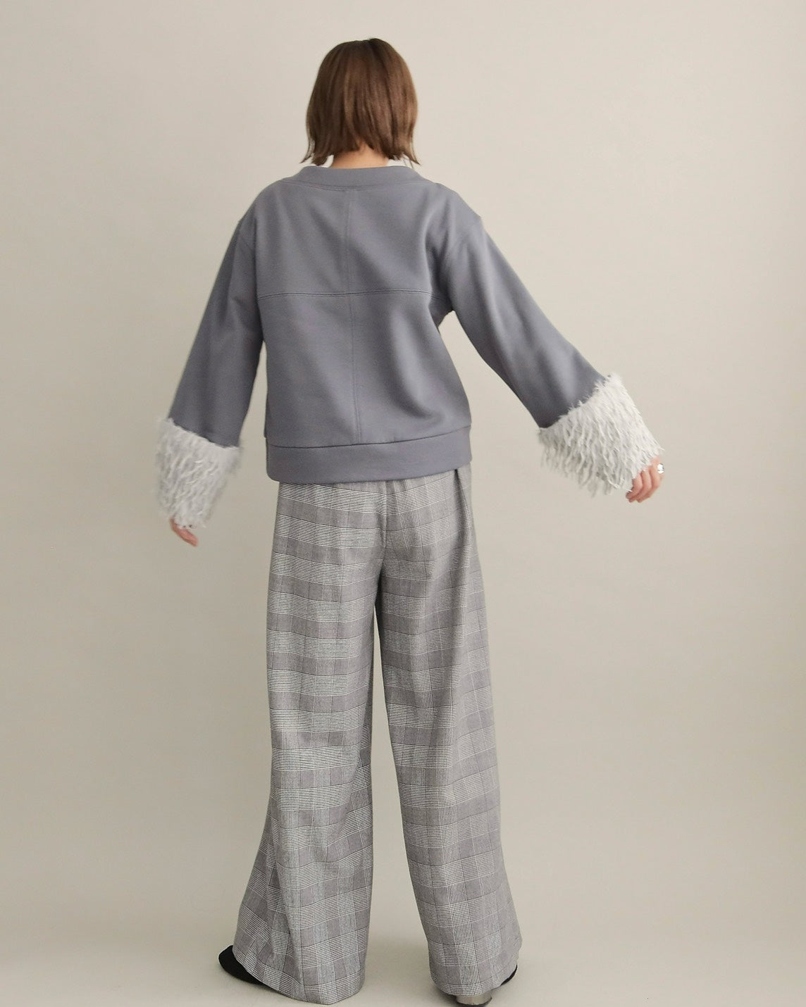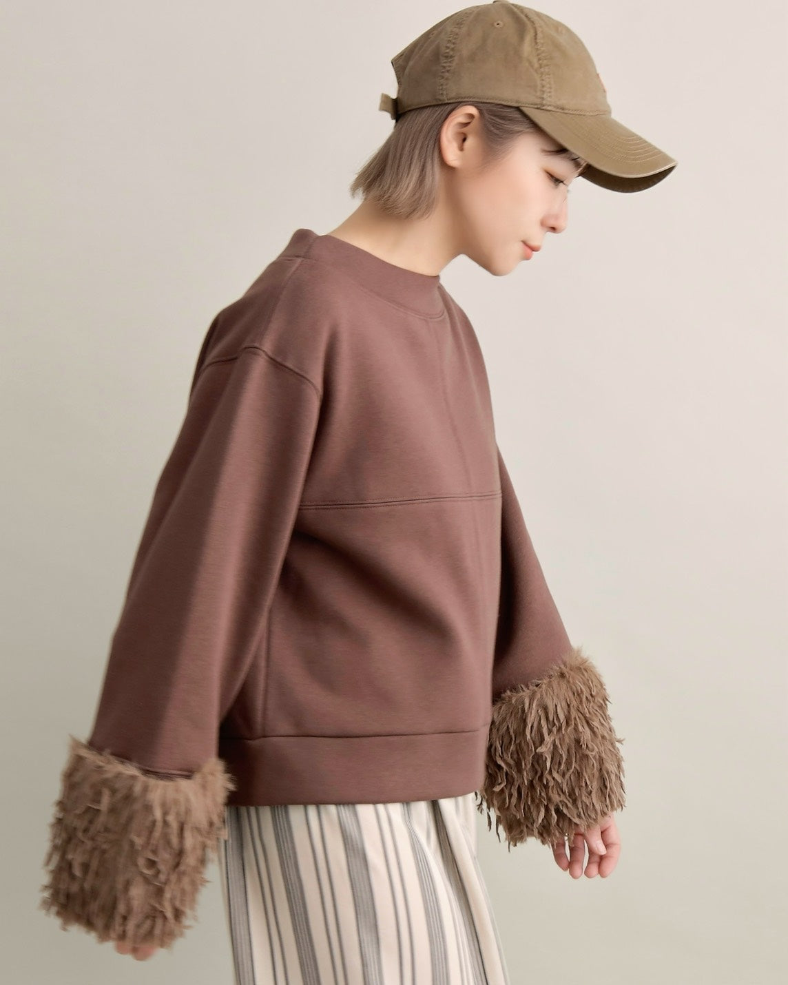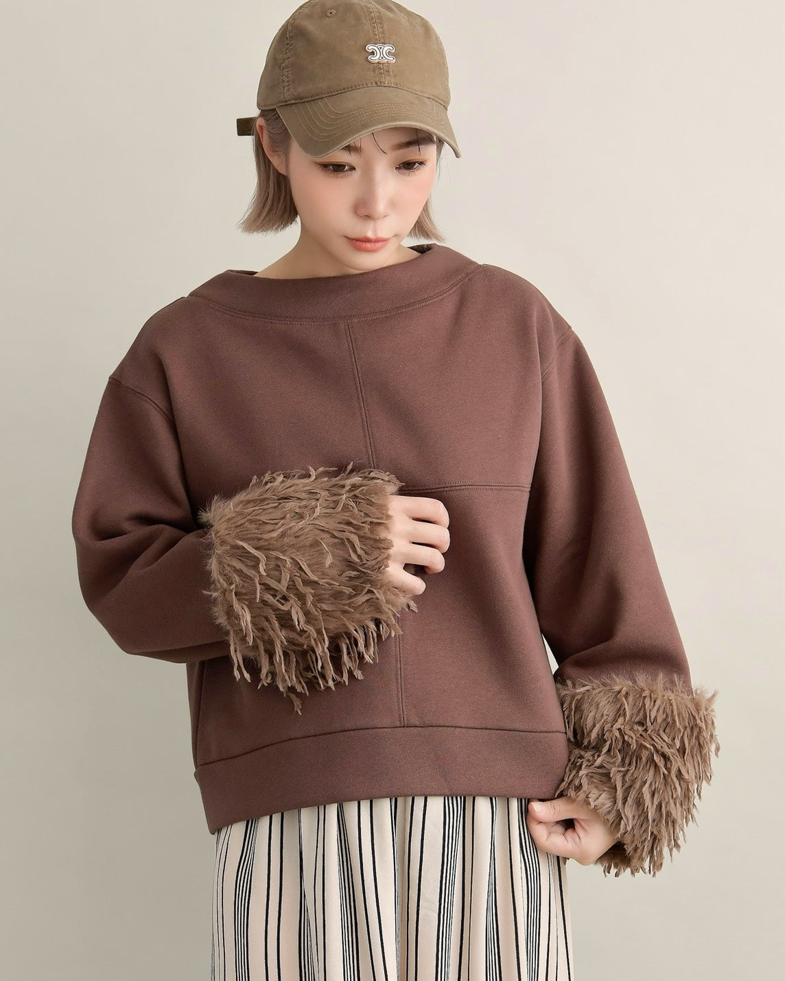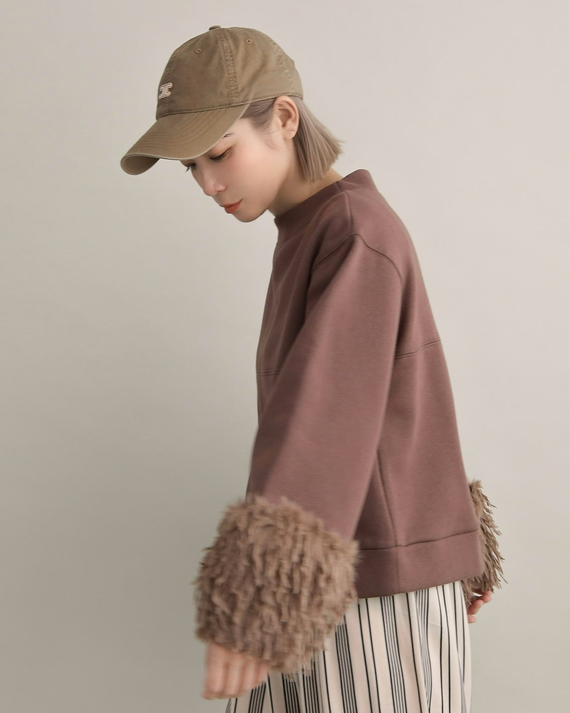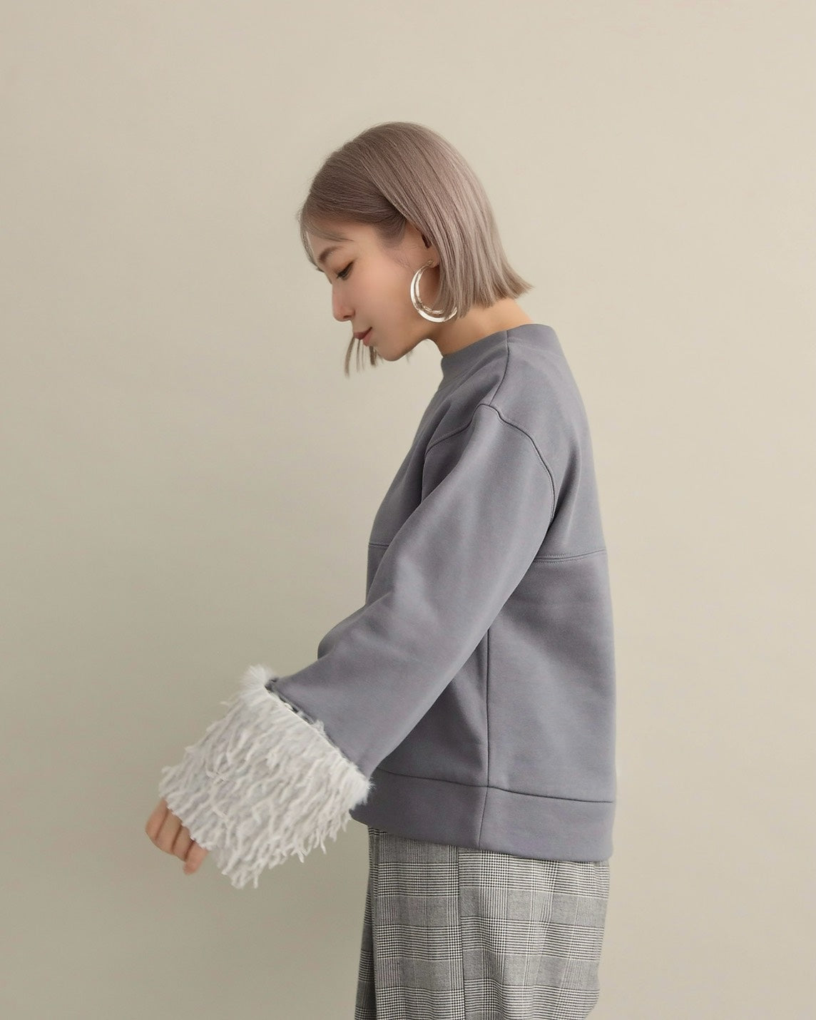 袖口にあしらったフリンジファーが、存在感を放つデザインスウェット。