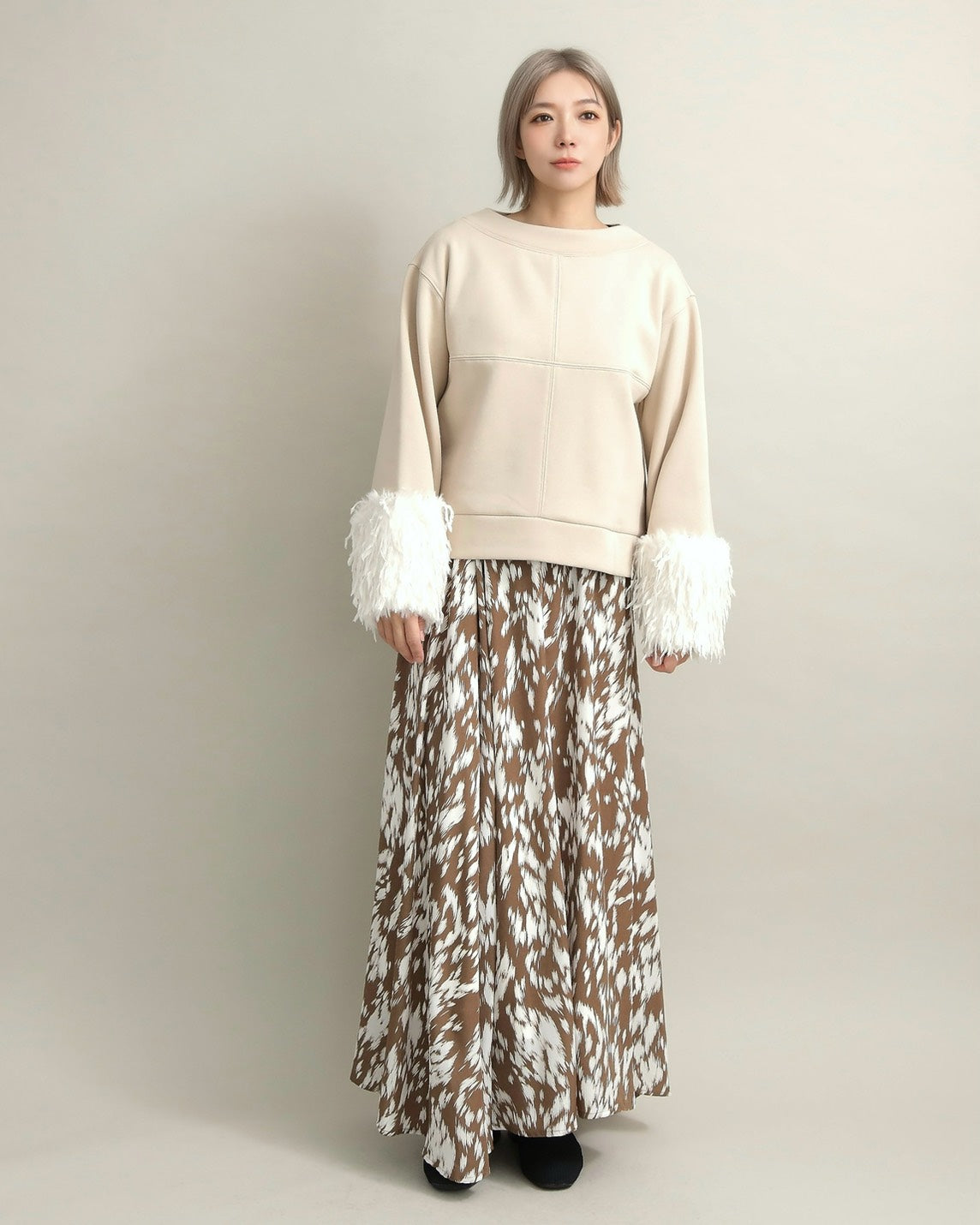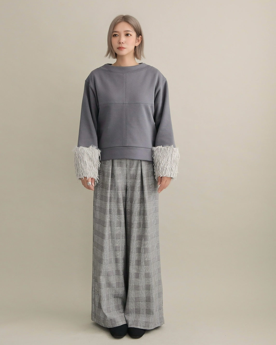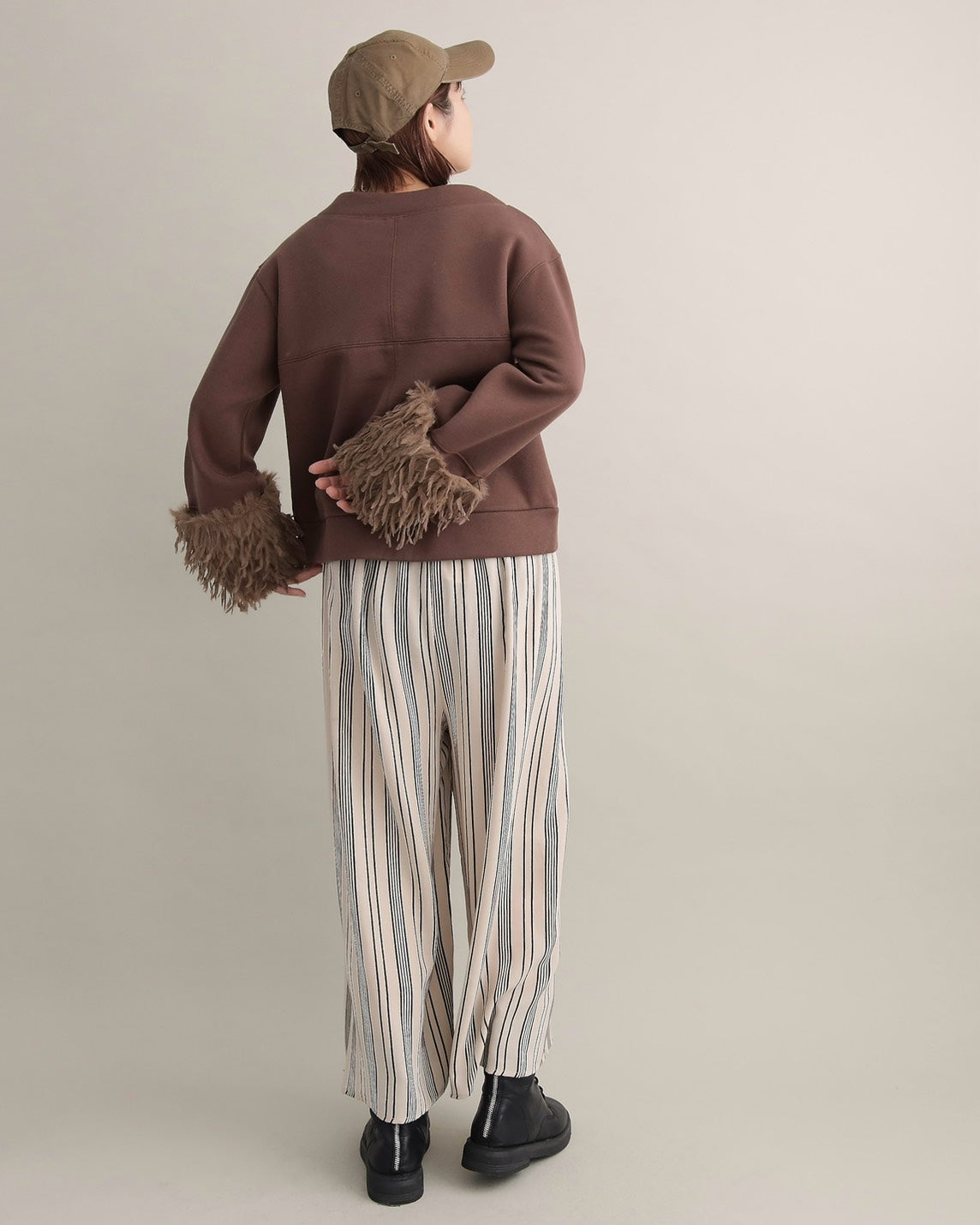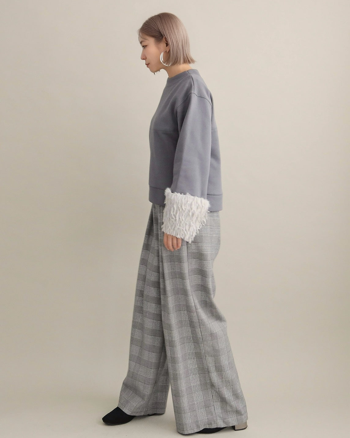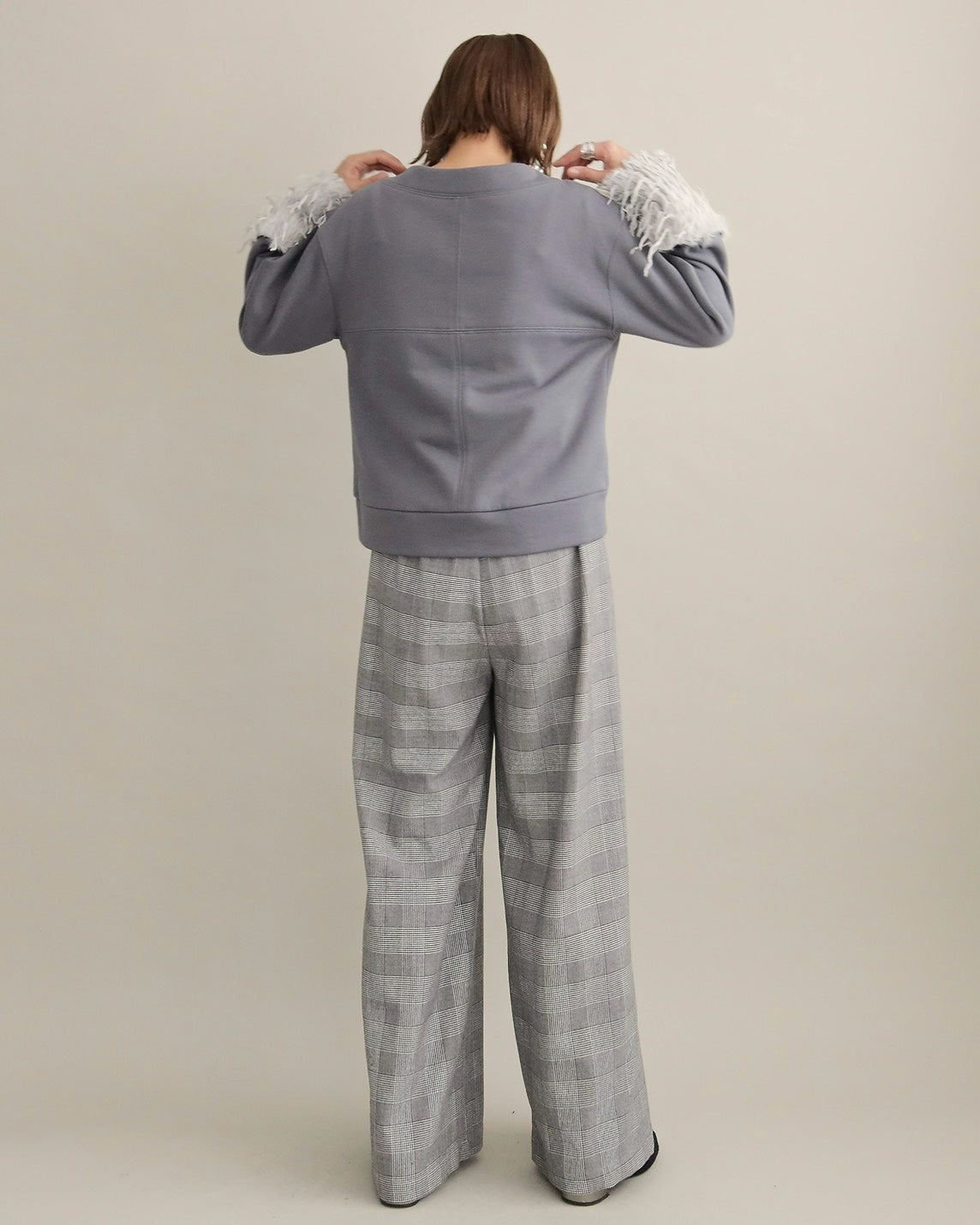 袖口にあしらったフリンジファーが、存在感を放つデザインスウェット。