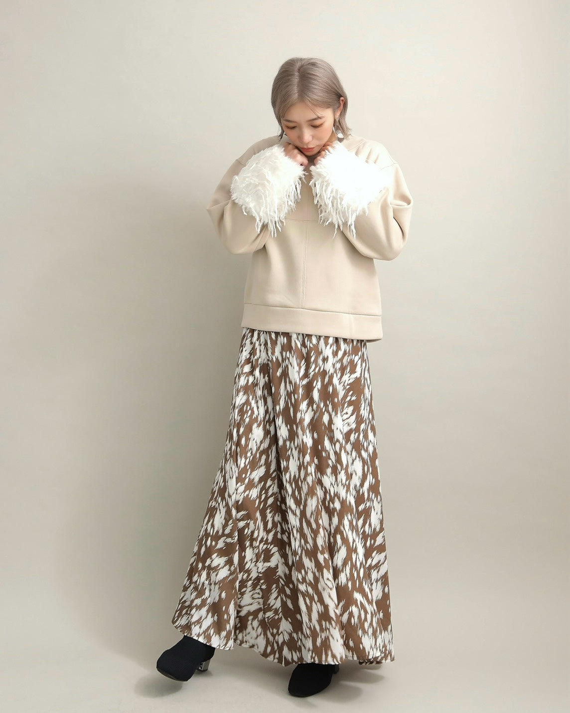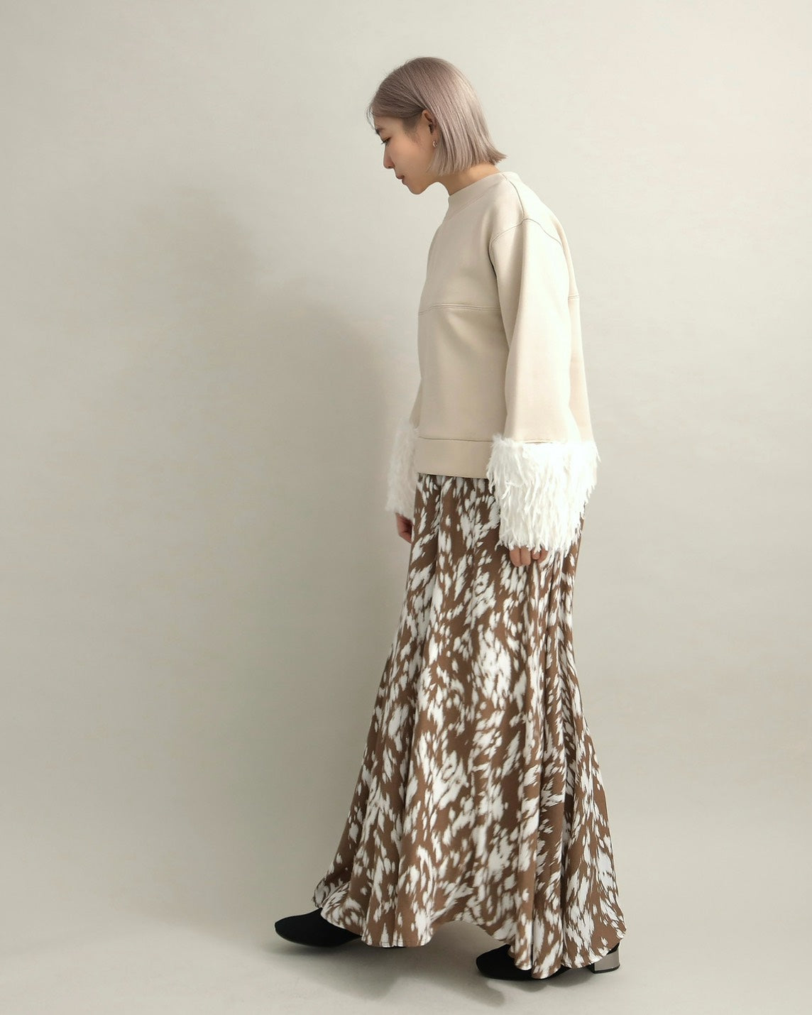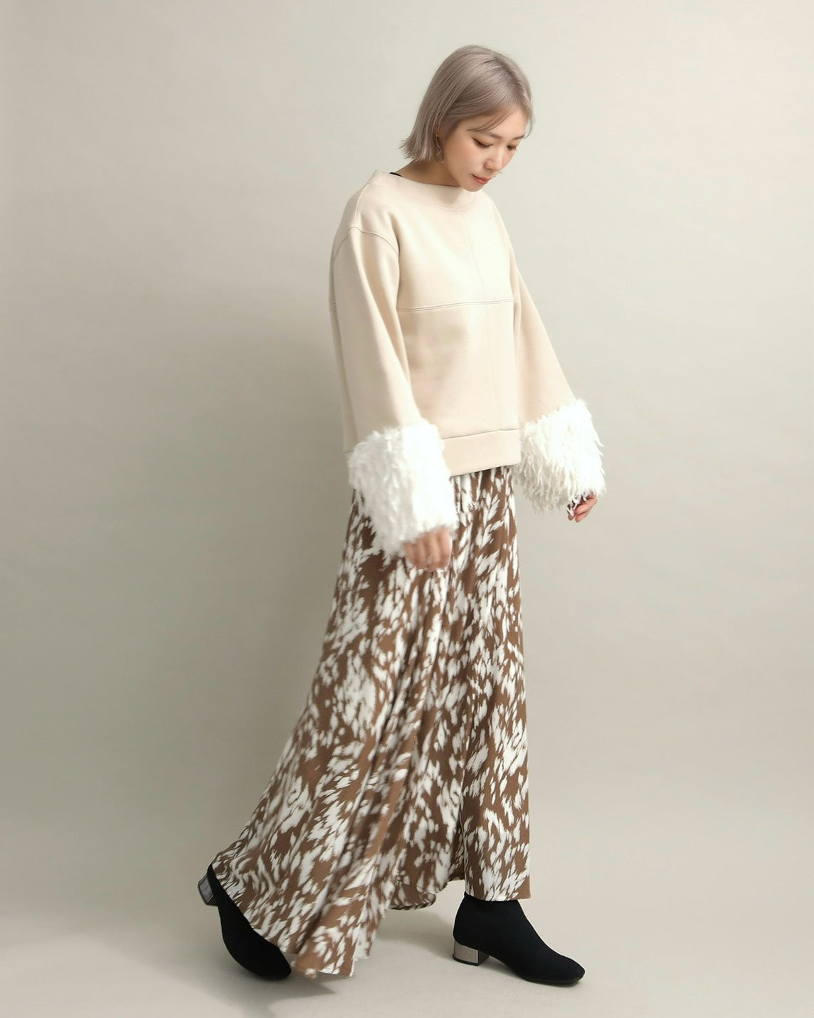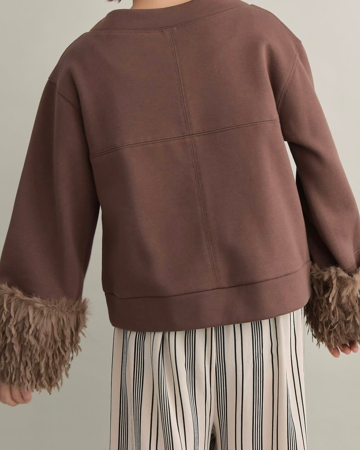 袖口にあしらったフリンジファーが、存在感を放つデザインスウェット。