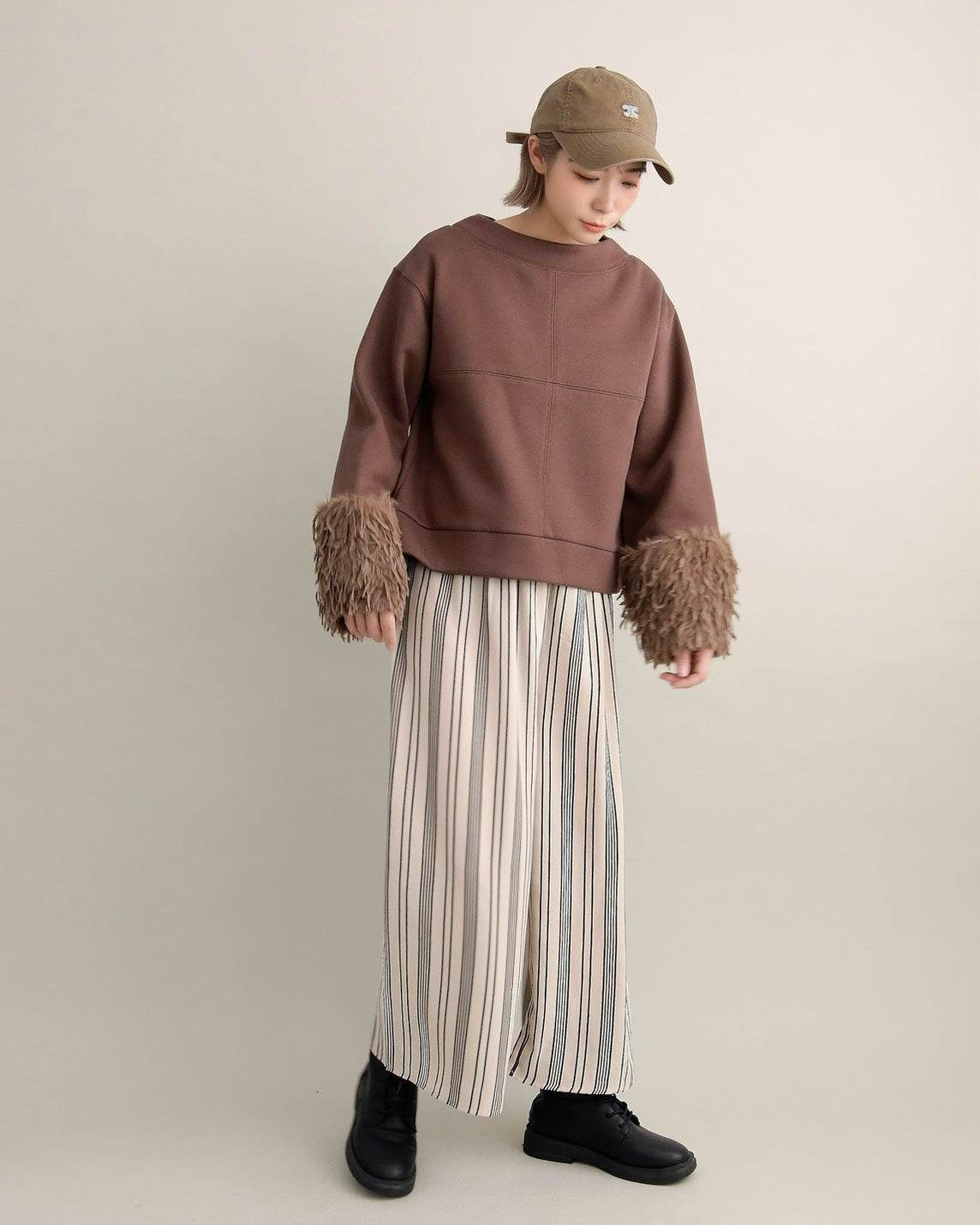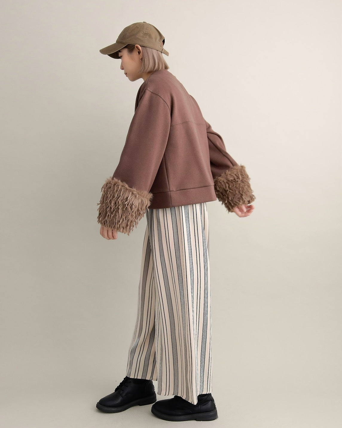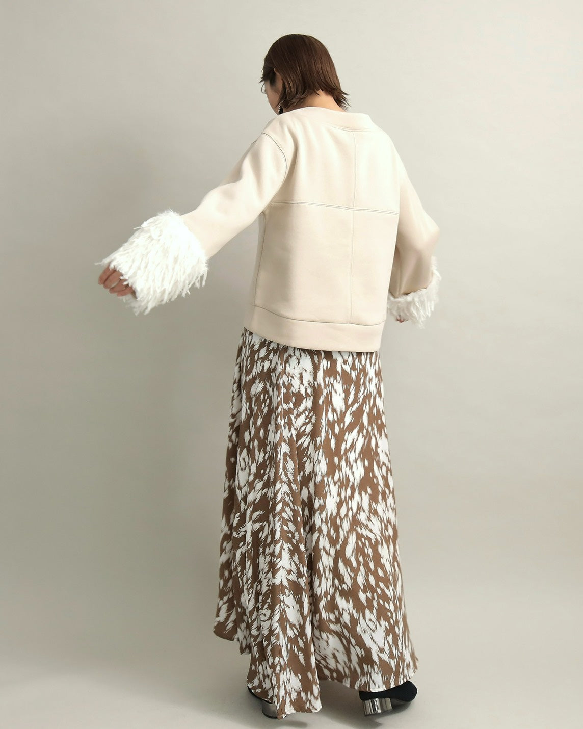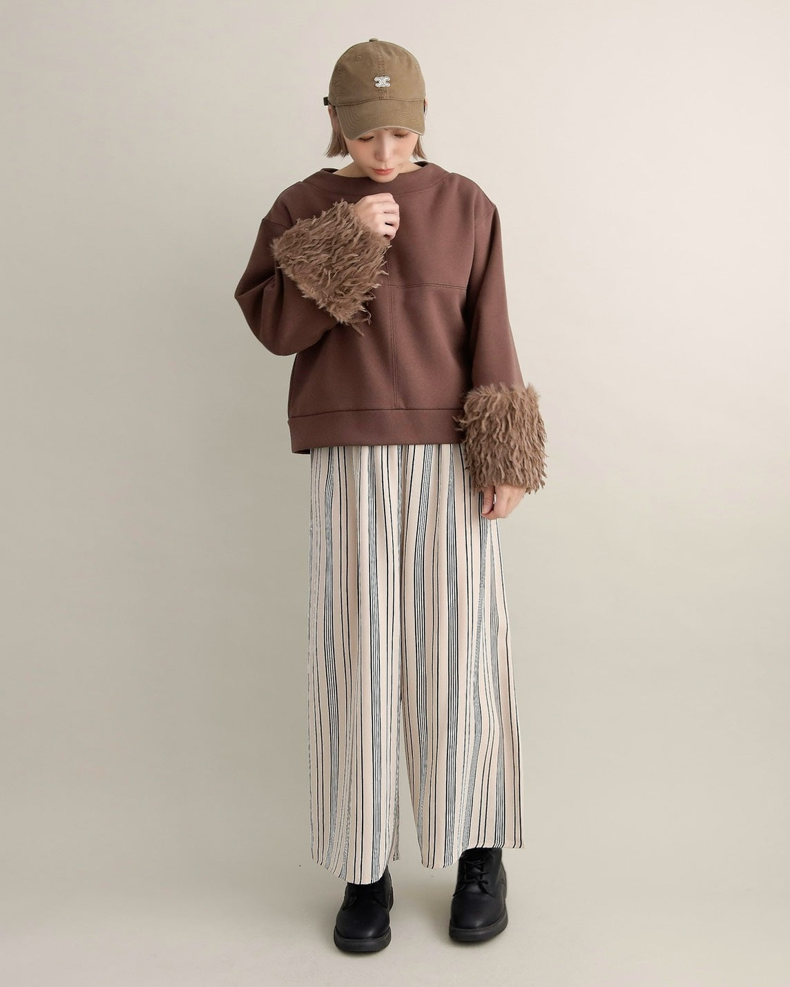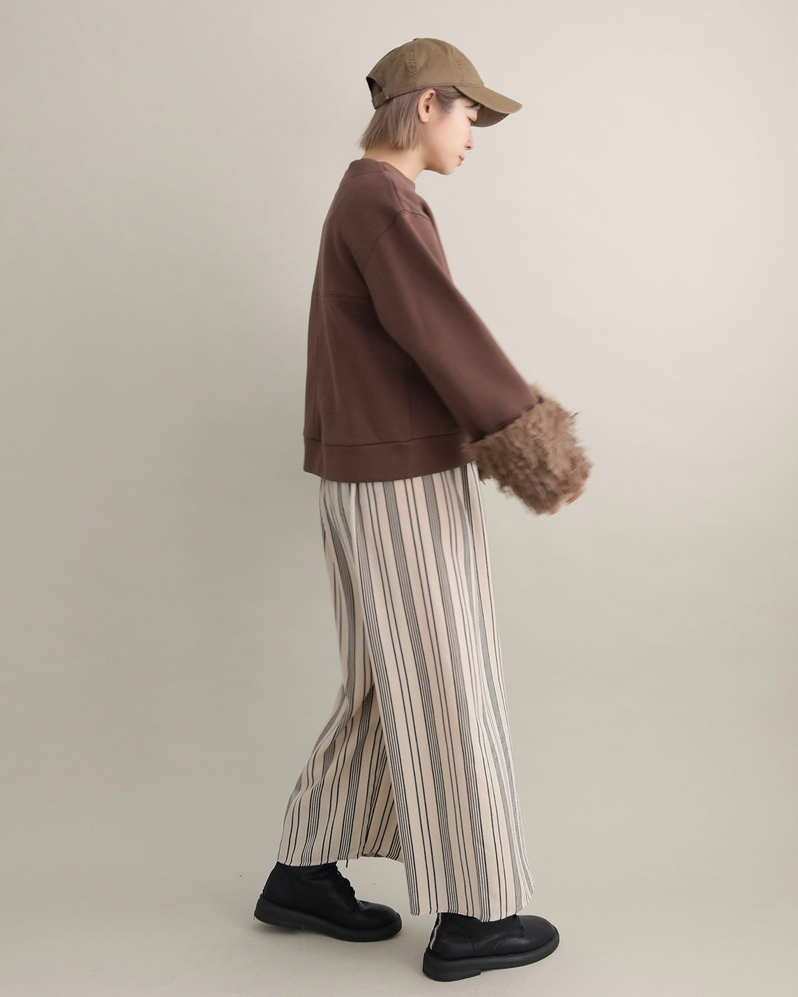 袖口にあしらったフリンジファーが、存在感を放つデザインスウェット。