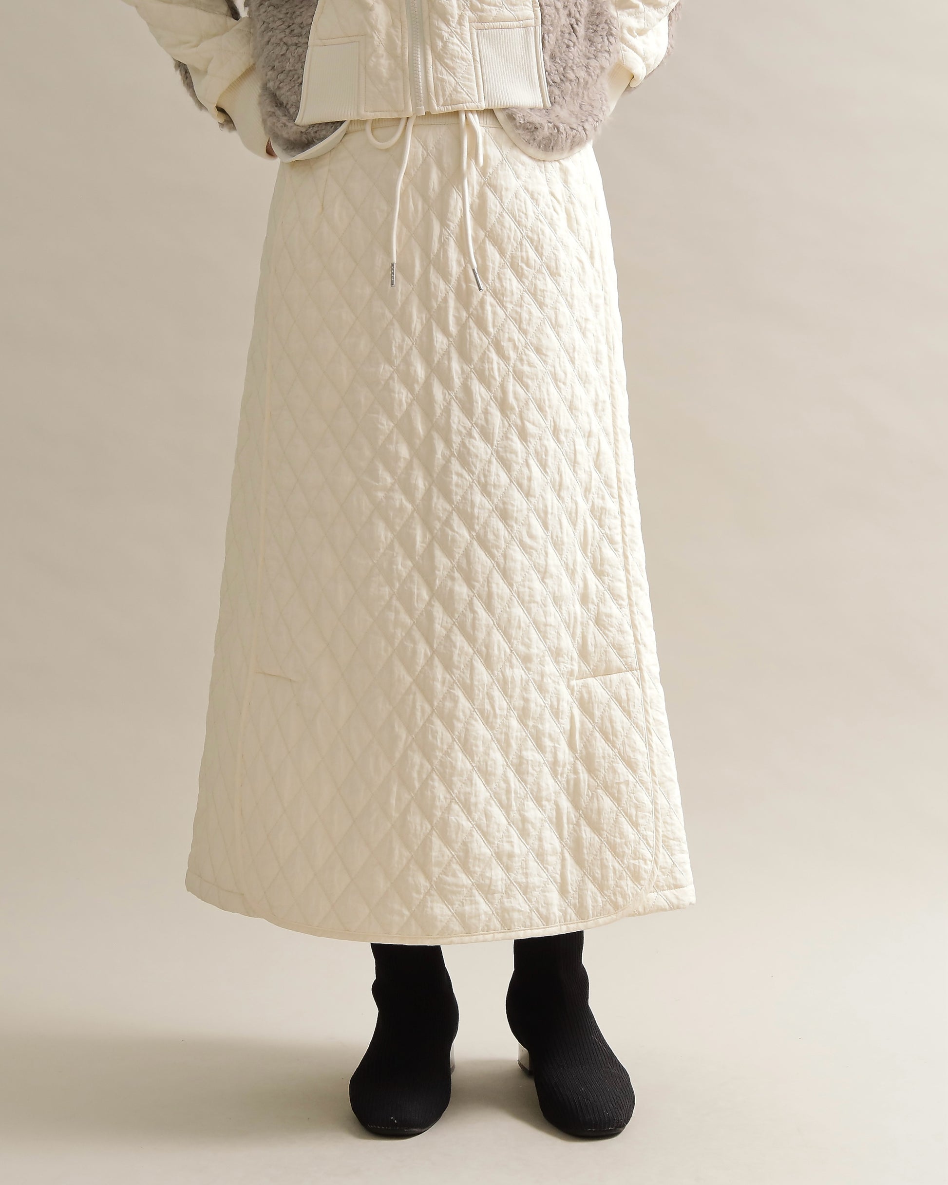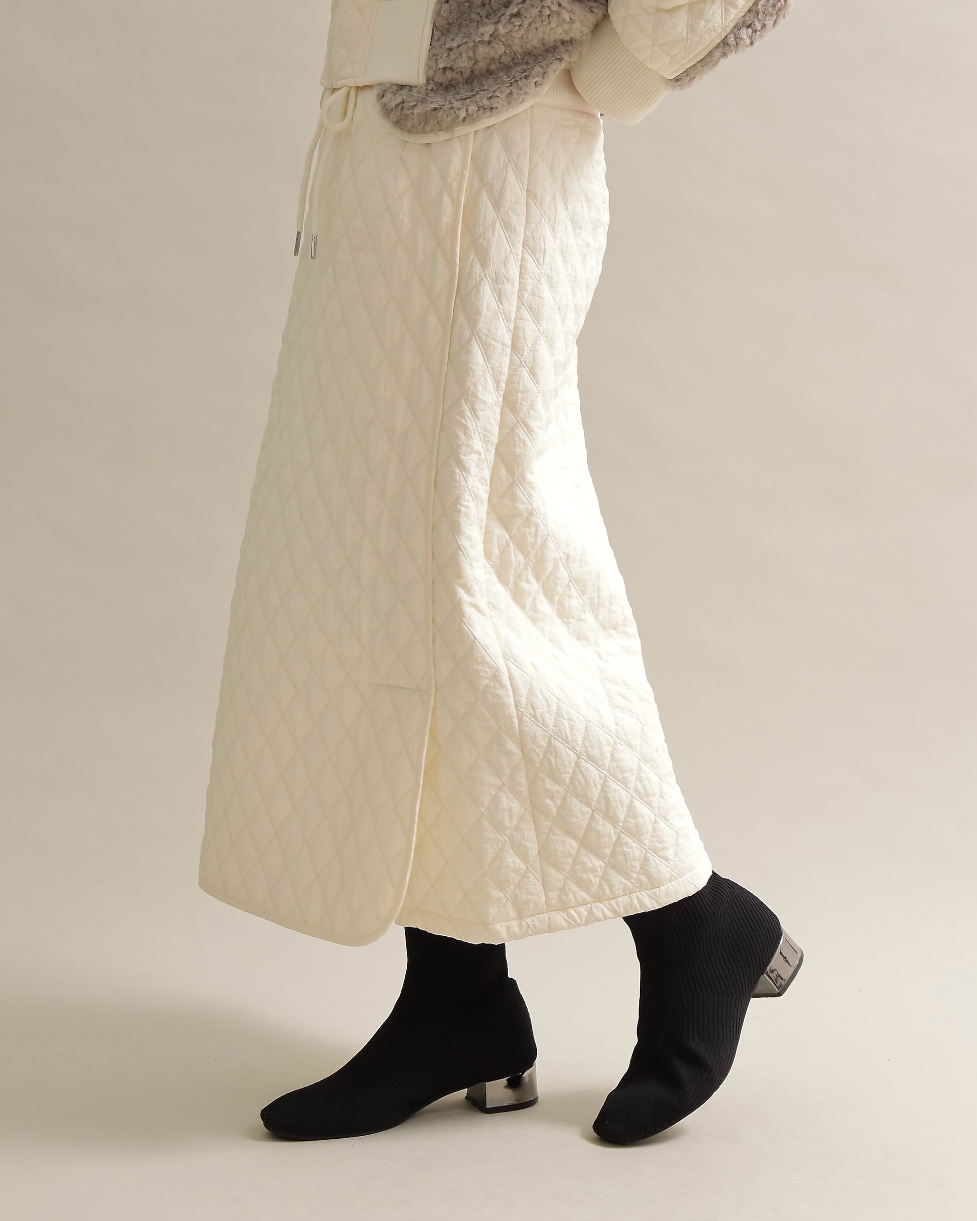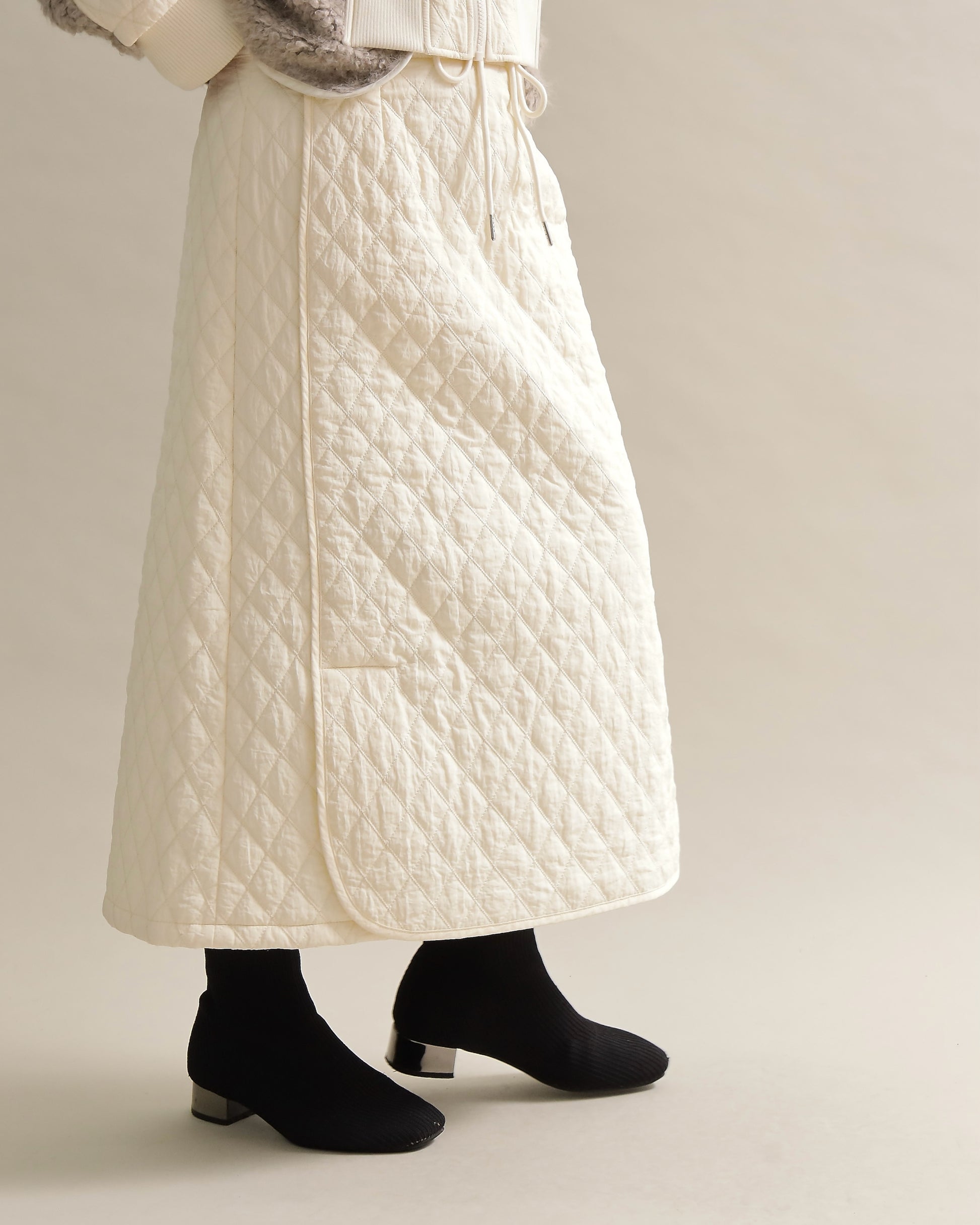 ふっくら軽いキルティング素材で仕上げた、大人のためのキルトスカート。
