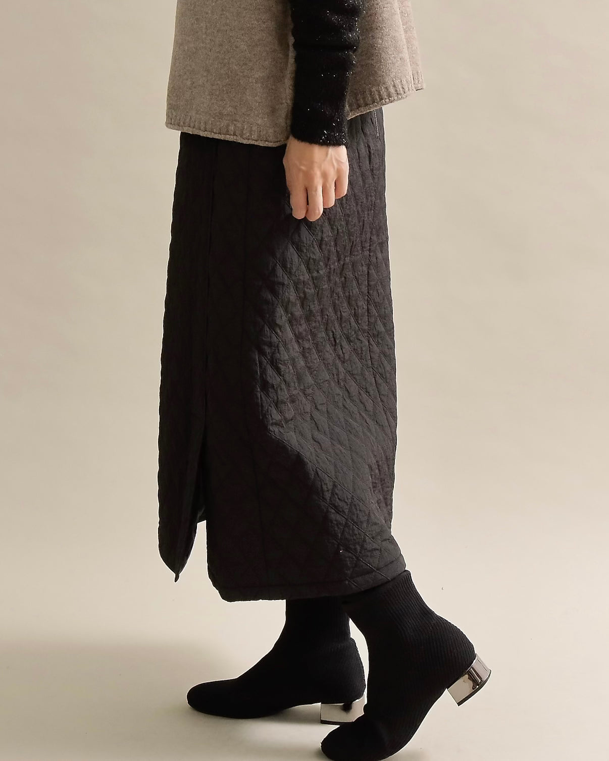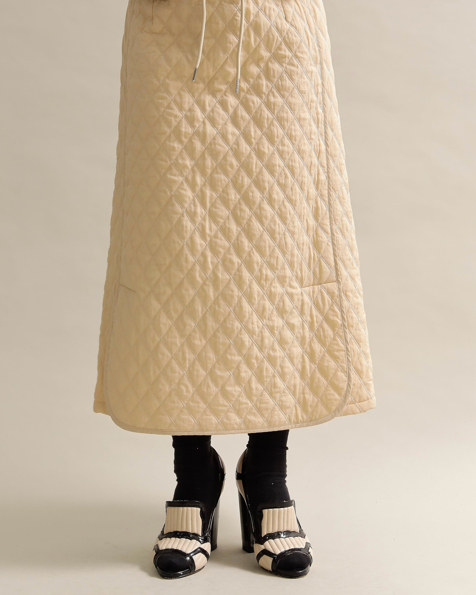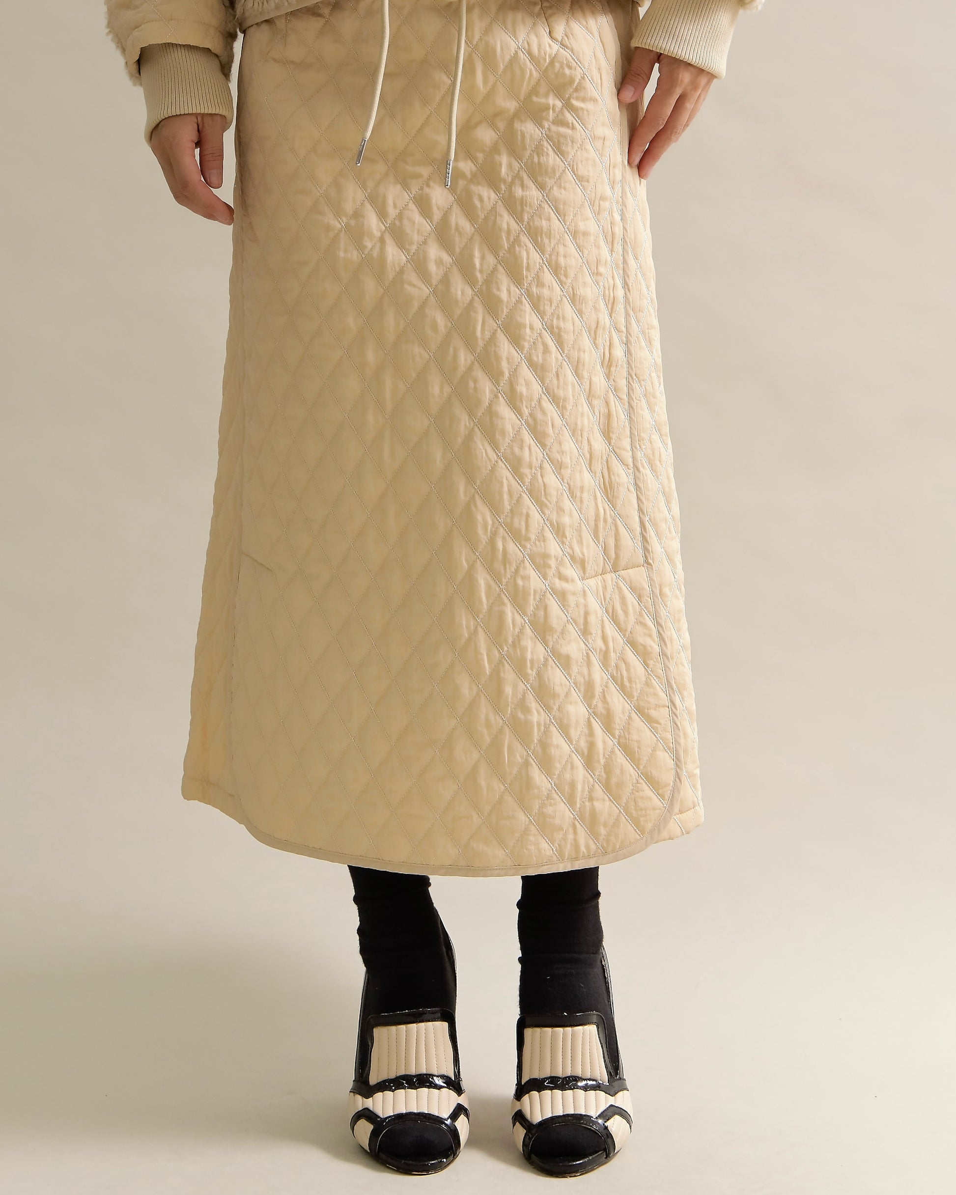 ふっくら軽いキルティング素材で仕上げた、大人のためのキルトスカート。