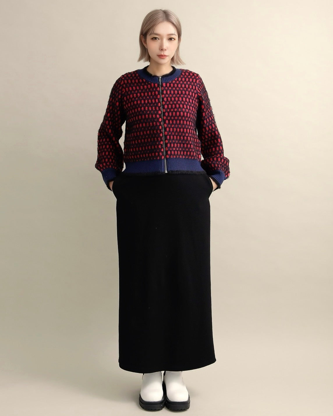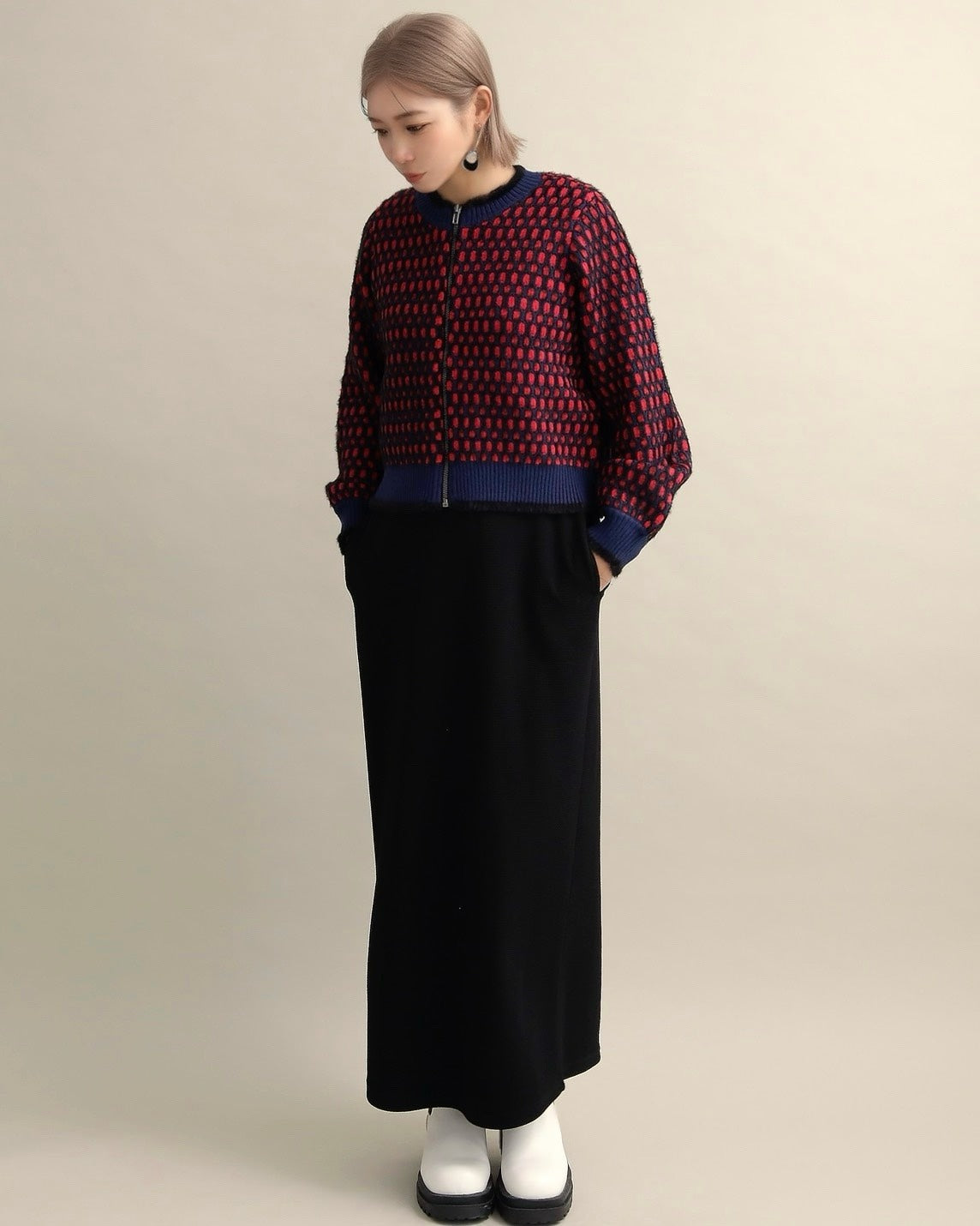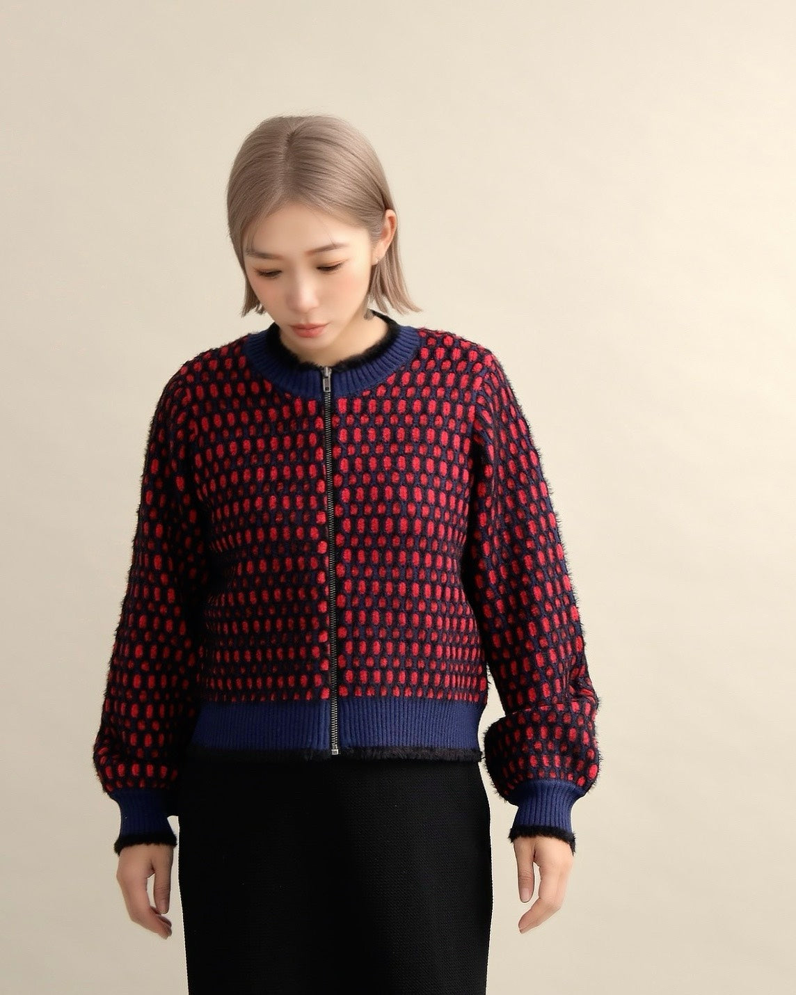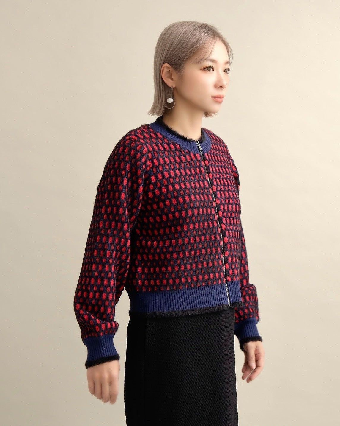 ドットジャガードニットブルゾン