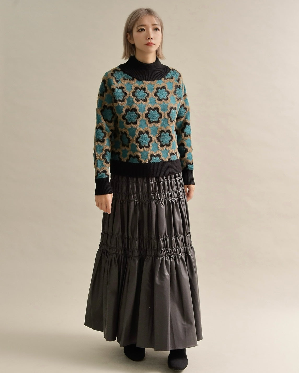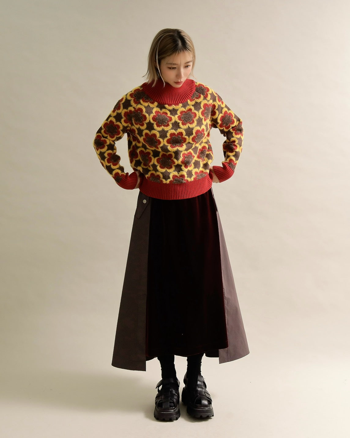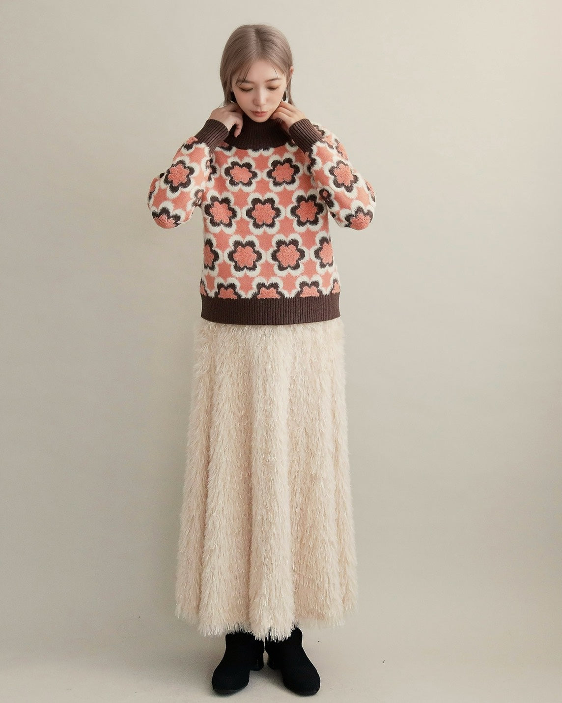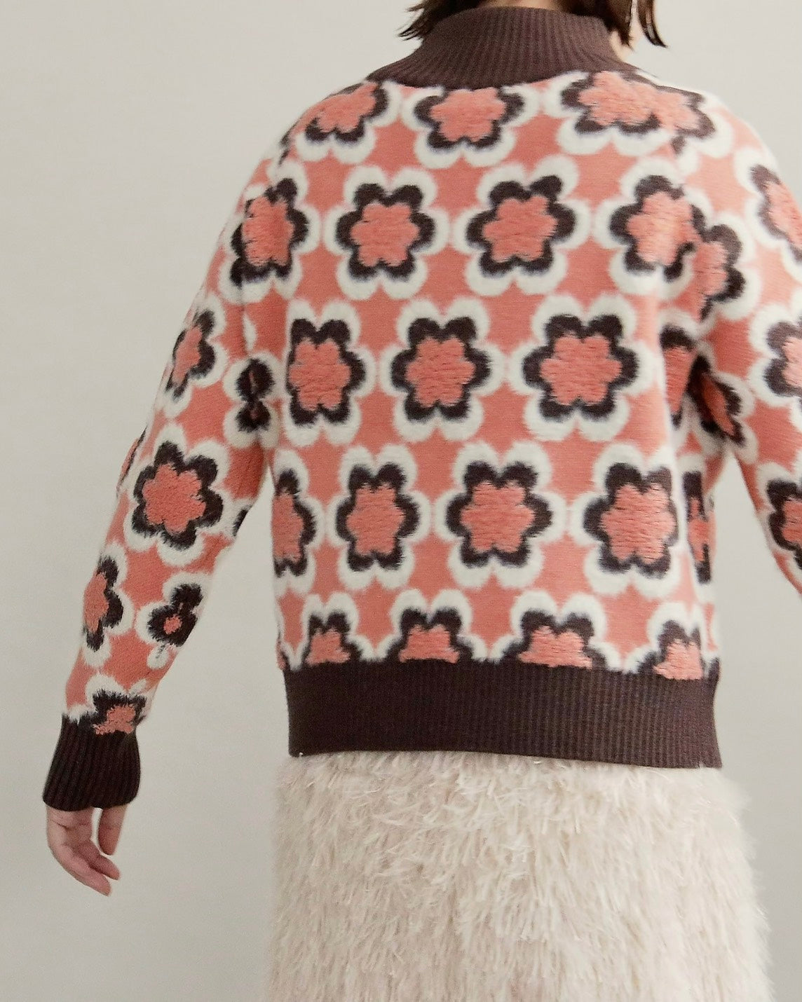 レトロフラワーハイネックニット