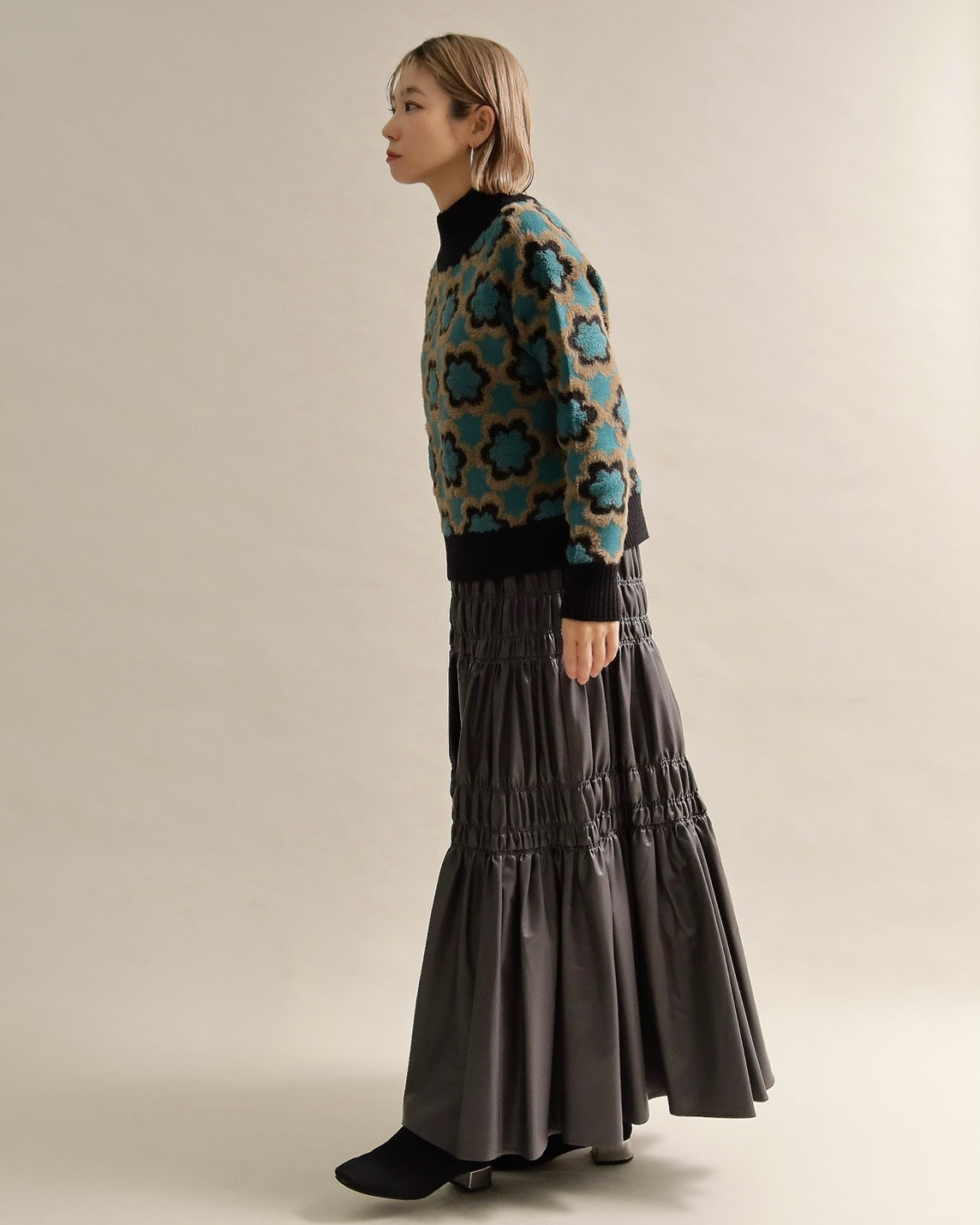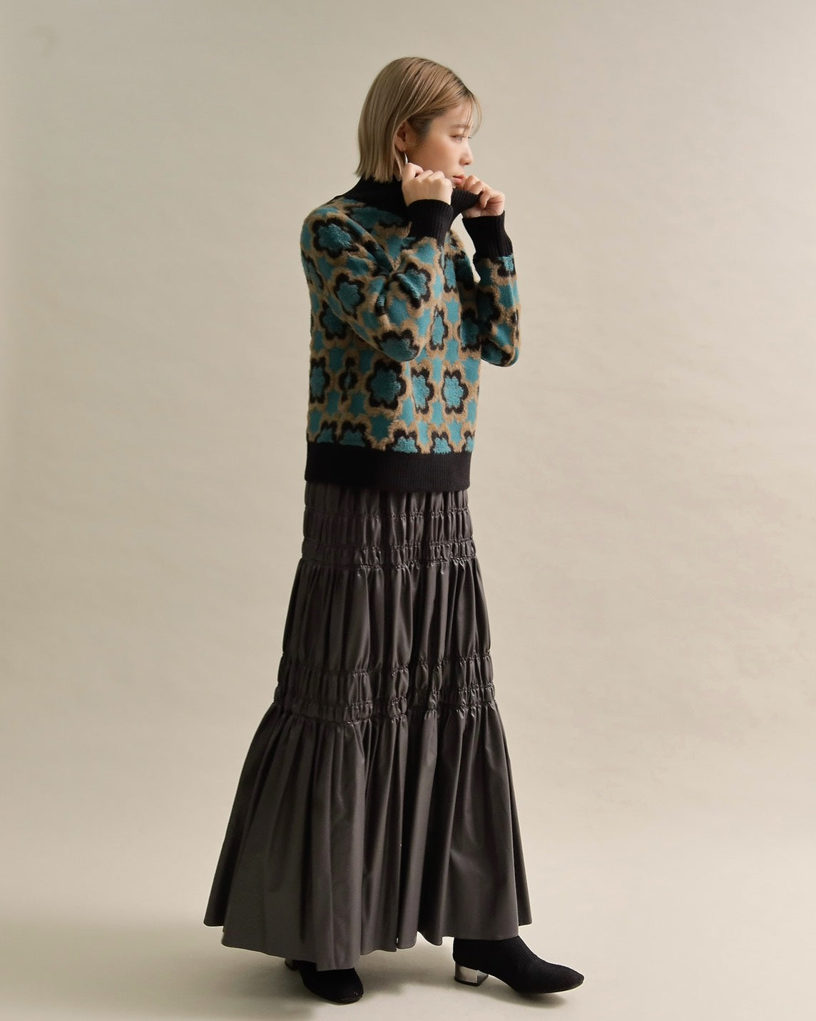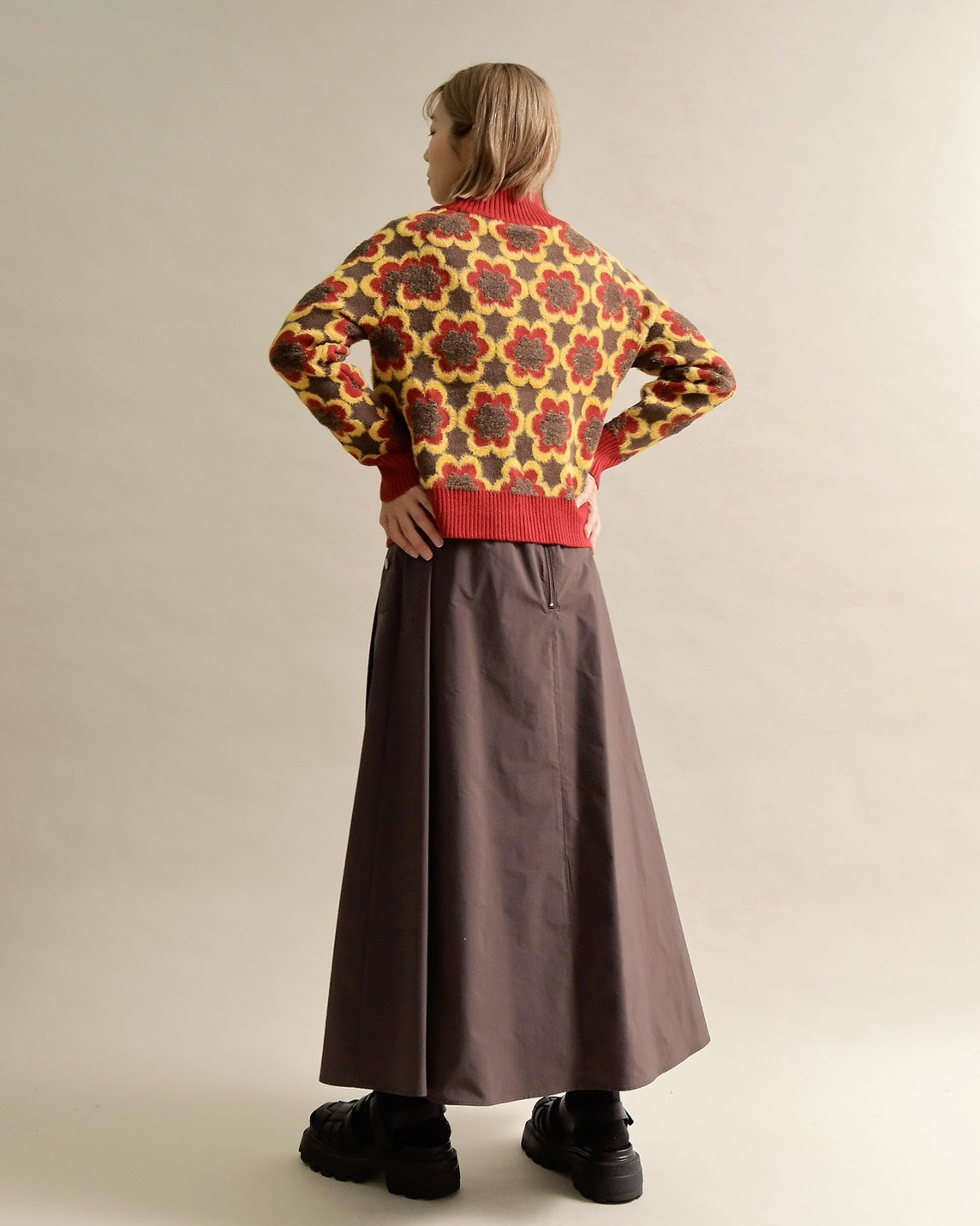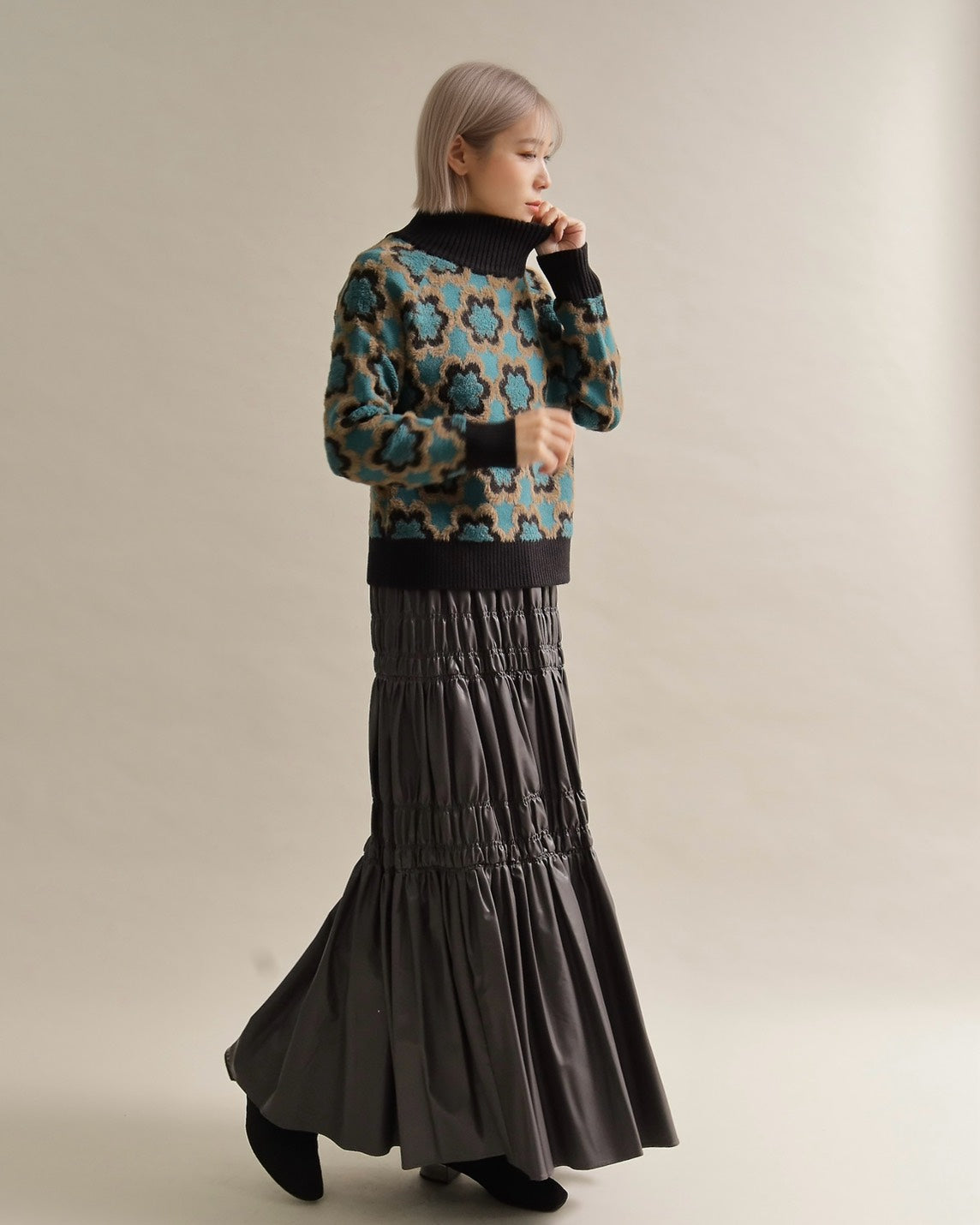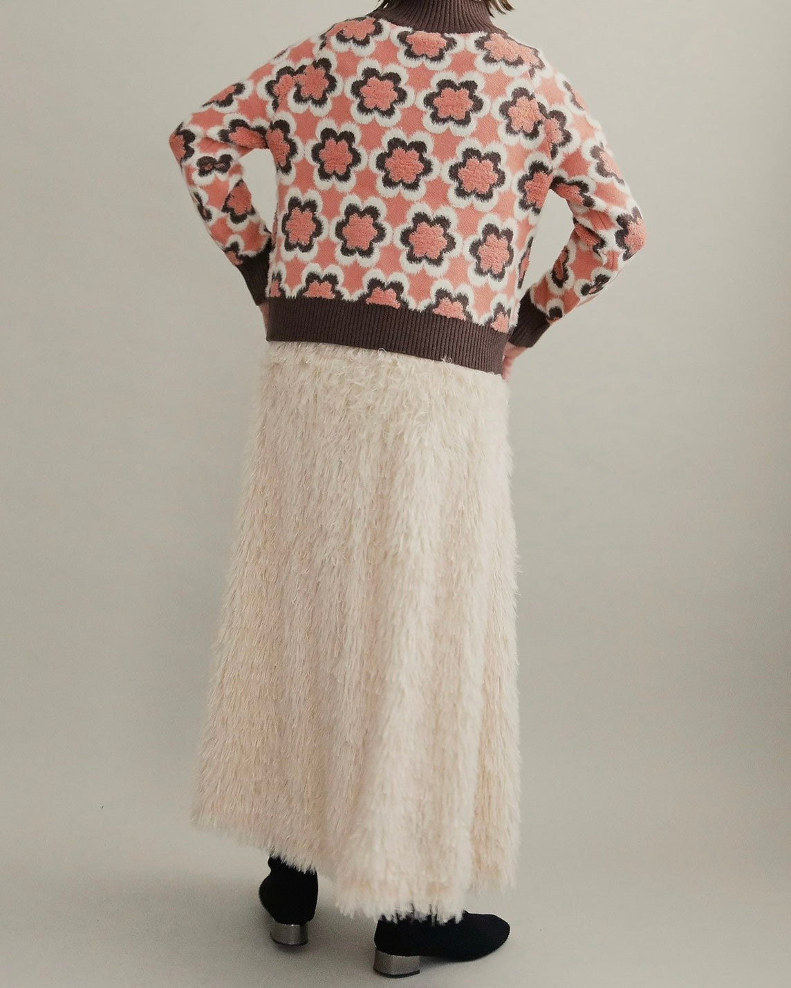 レトロフラワーハイネックニット