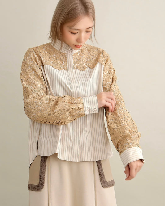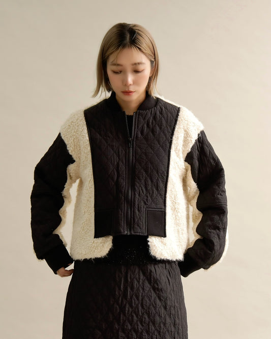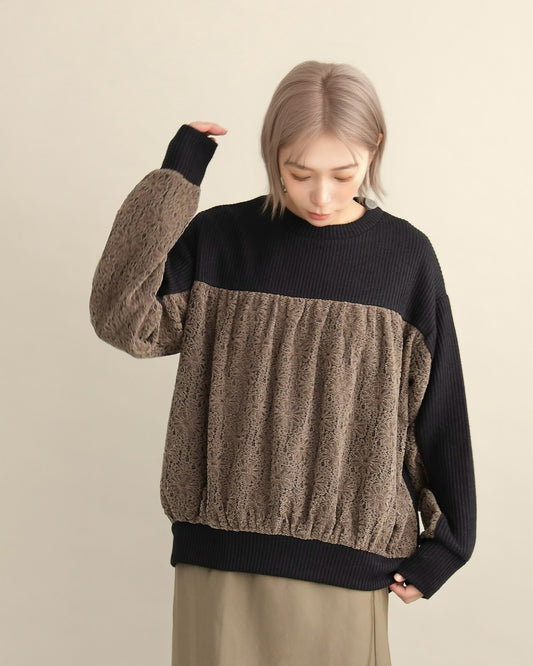 エコレザー×ボア切り替えベルトデザインプルオーバー